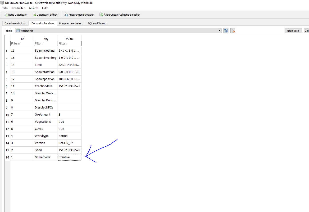Rising World benutzt als Standart SQLite dafür benutze ich den DB Browser for SQLite wer eine MSQL Datenbank verwendet kann z.B Navicat Lite verwenden.