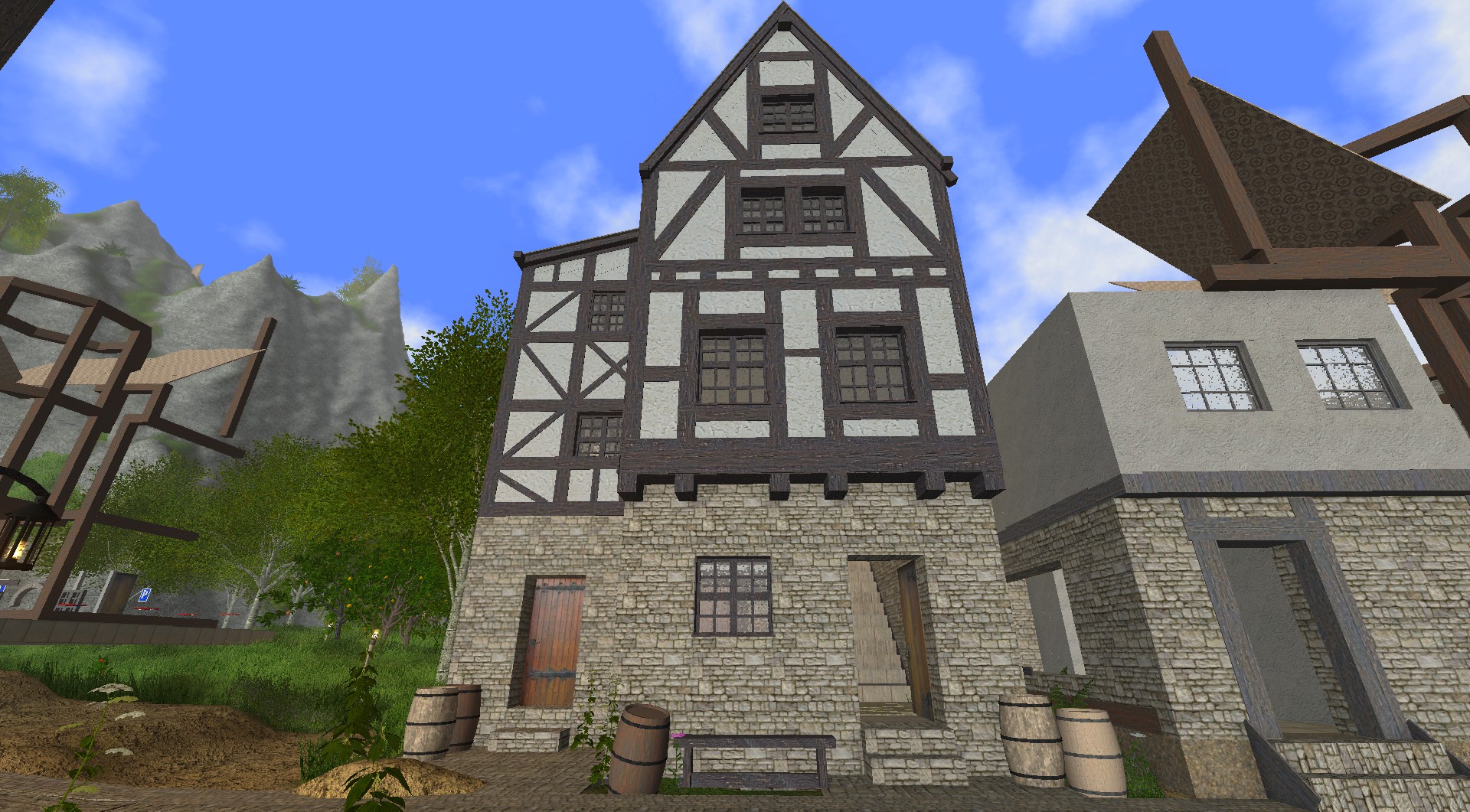 Hier mal eins meiner Fachwerkhäuser das aus Blöcken und Balken gebaut wurde. Der Fachwerkaufbau ist so, wie es gängiger