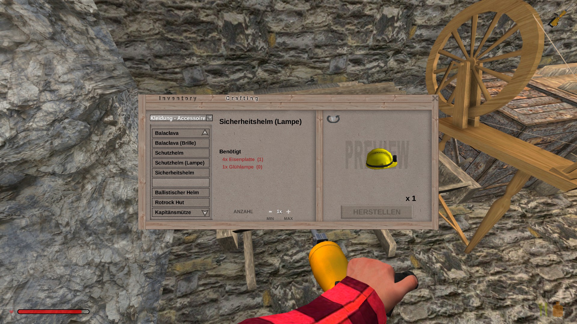 Dieses Update führt auch ein paar neue Haarschnitte und Kleidungsstücke ein, oder genau genommen neue Kopfbedeckungen. Darunter finden sich zwei spezielle Gegenstände: Helme mit integrierten Lampen, welche Licht spenden. Das vorherige Debug Licht (L) wurde entsprechend entfernt (ist aber im Creative-Modus weiterhin verfügbar).