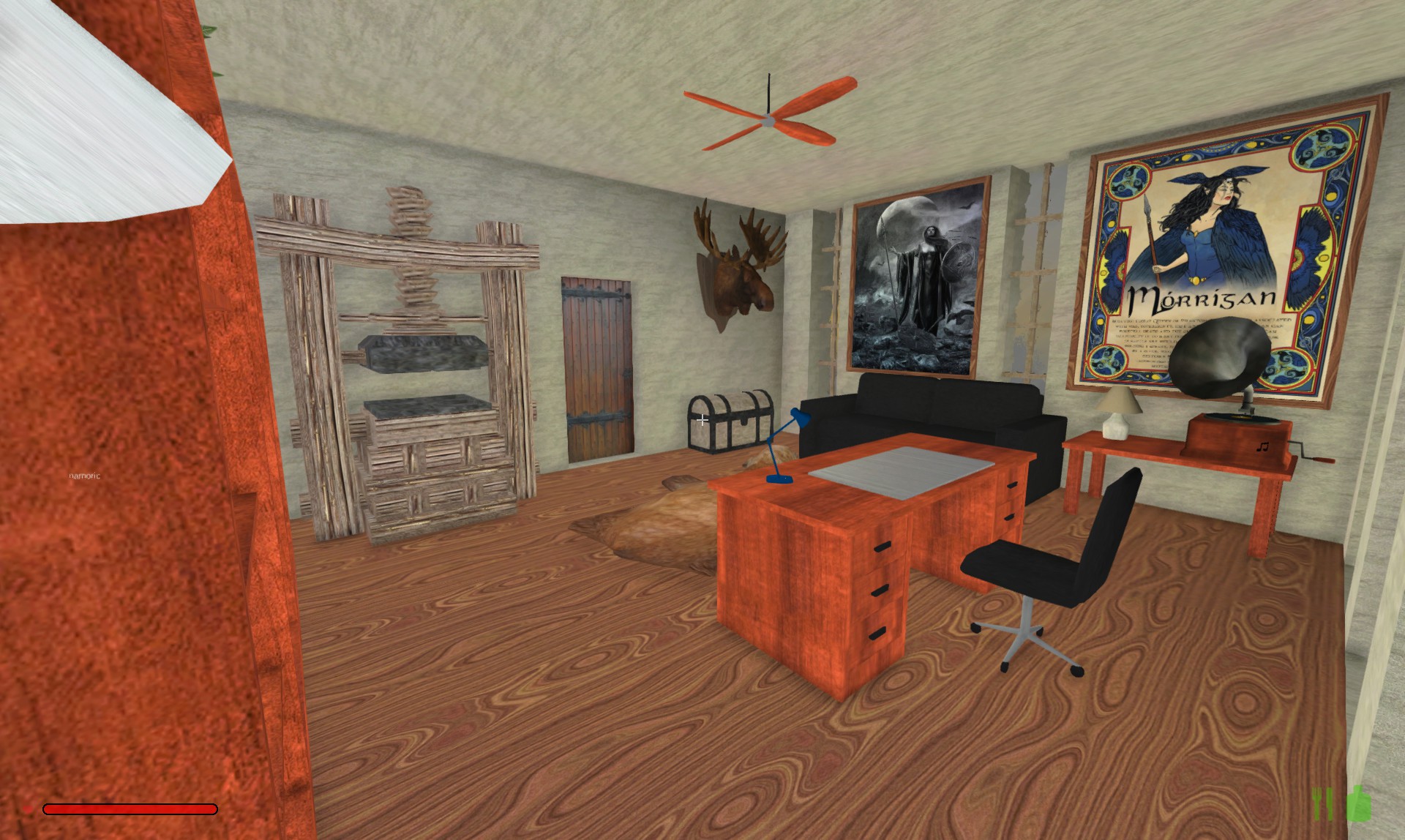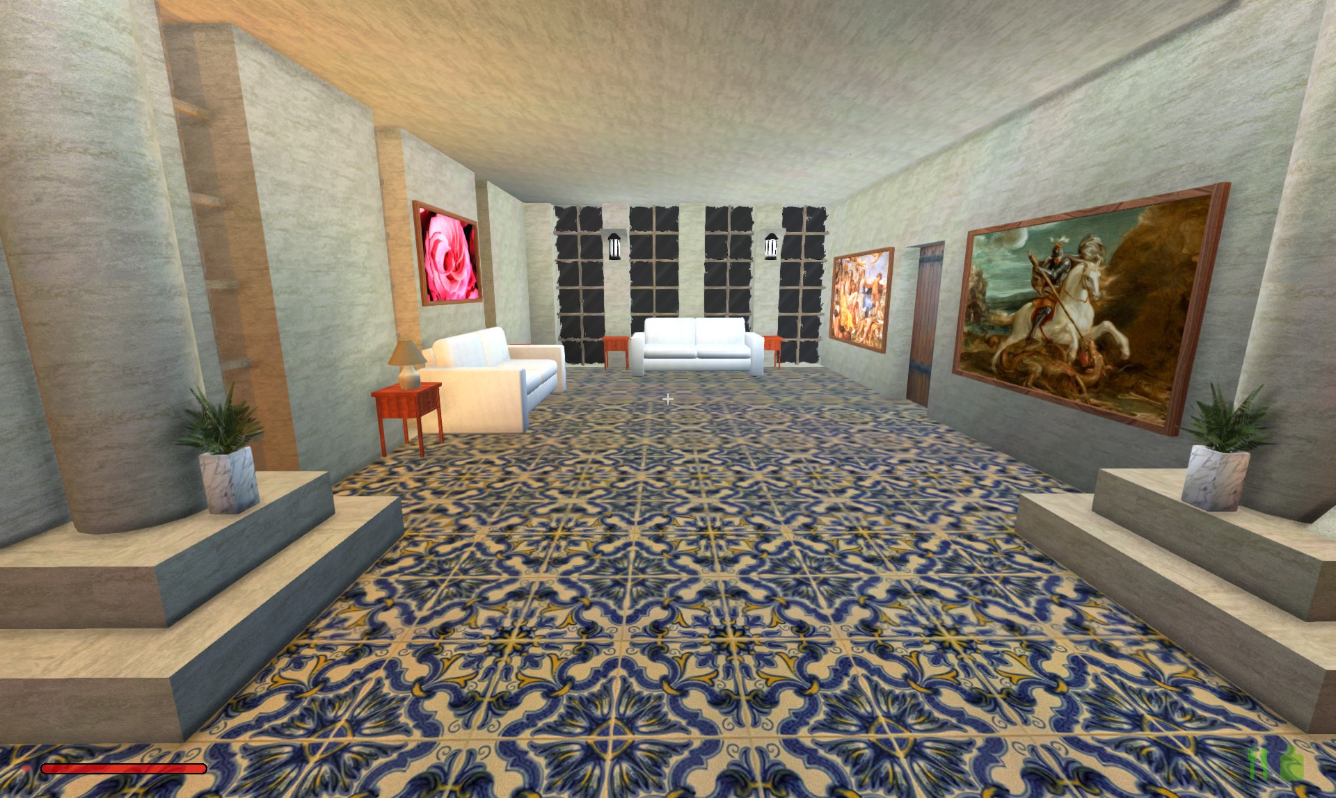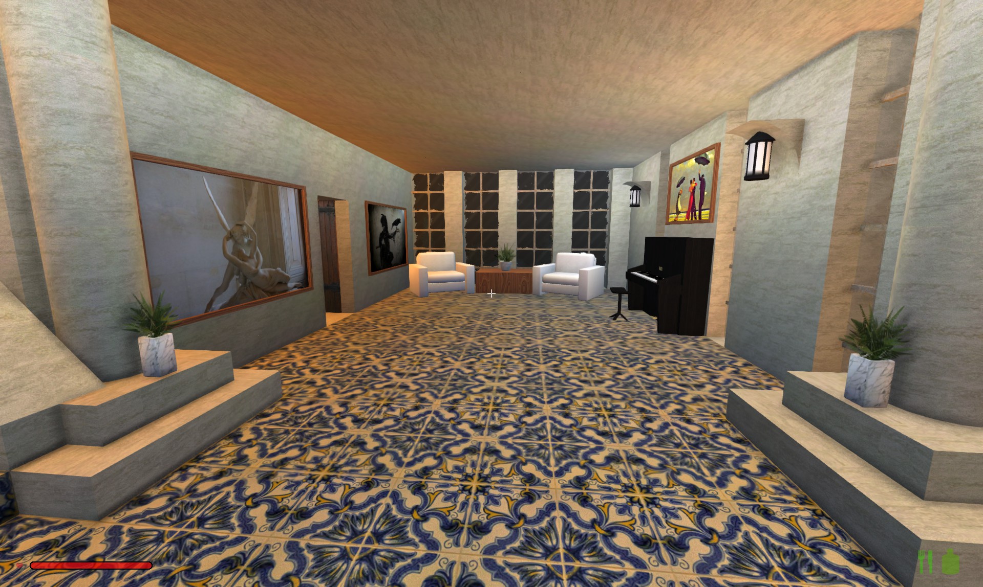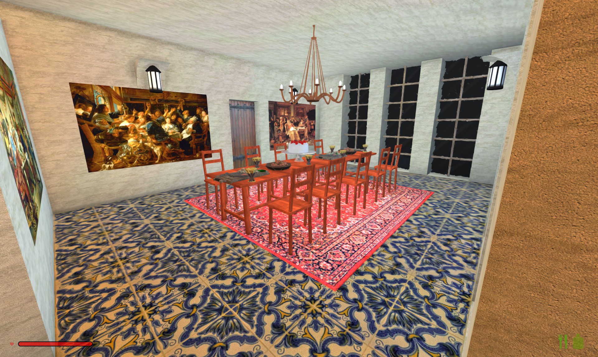 The pictures in the house are a couple of photos I took, and from artists Jan Steen, Jacob Jordaens, Helmut Newton, Jack Vettriano, Giovanni Paolo Pannini, and some things I found on the internet.