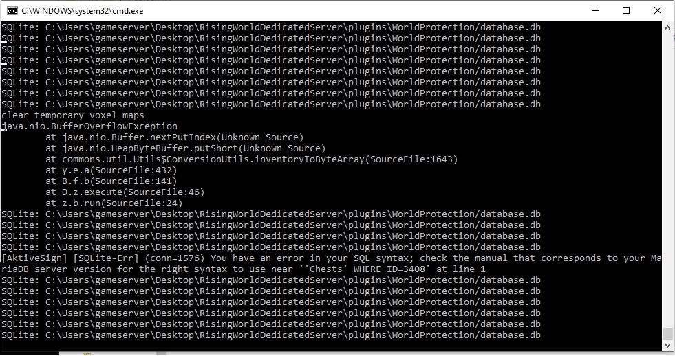 when i setup my usershop chest and have someone try to buy item i get this error on the server side, when i set sign up it says its connected to a chest but when someone clicks on sign it tells them sign is offline, when they get item out of chest the error pops up on server side,,, any help?