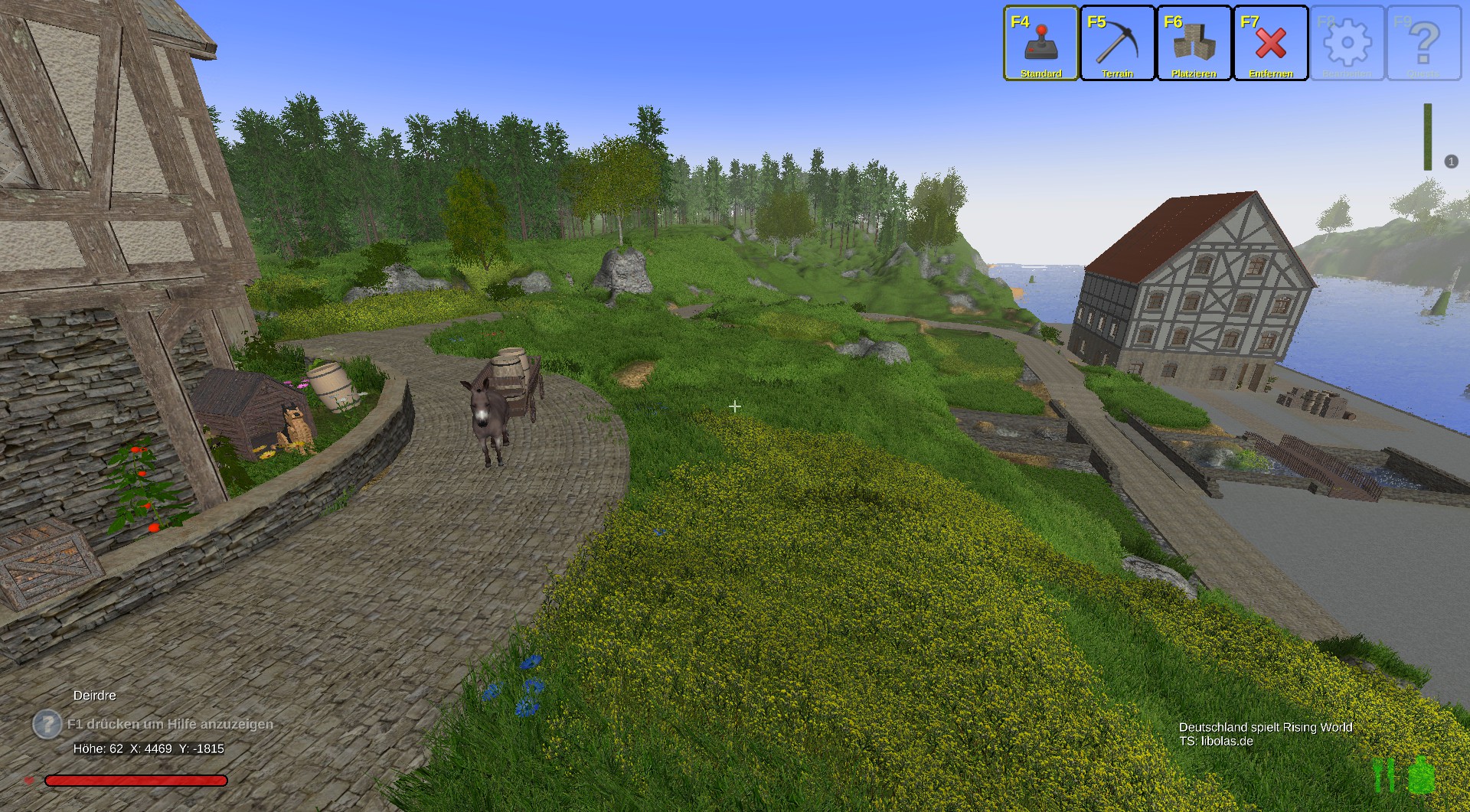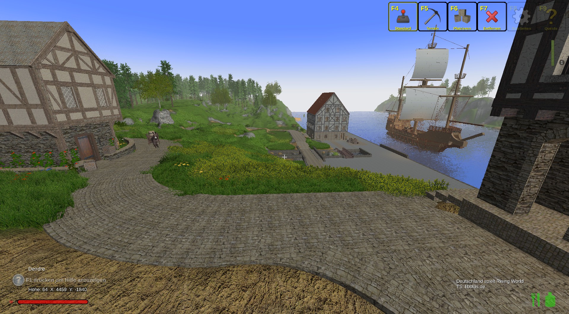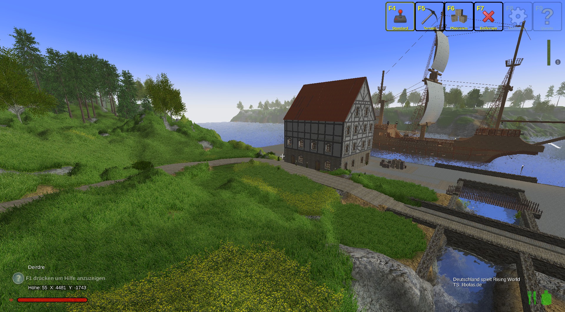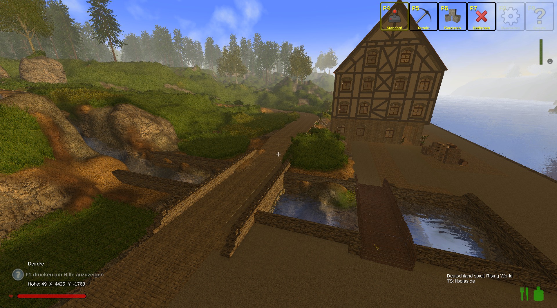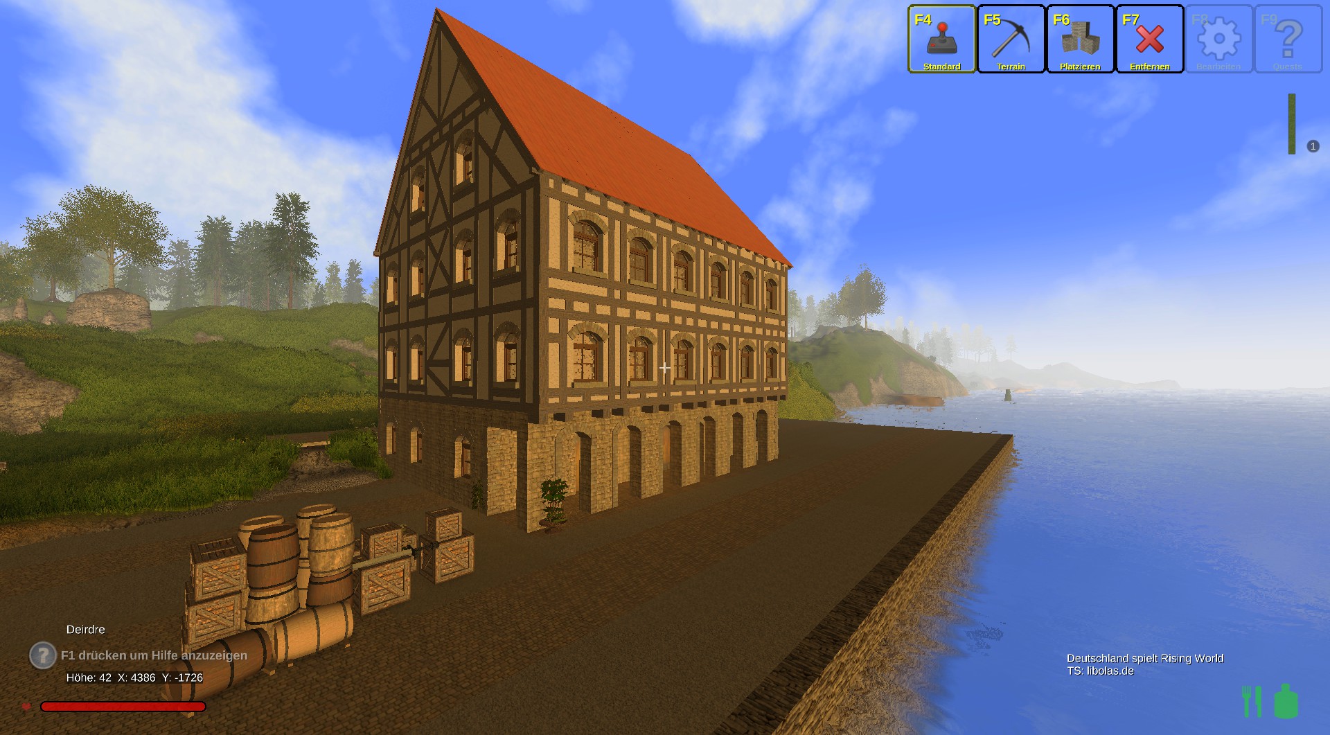 Ich baue sehr viel mit Balken und Brettern, allerdings sind auch einige Häuser aus Stein, und den Fußboden lege ich meistens auch mit Blöcken aus.