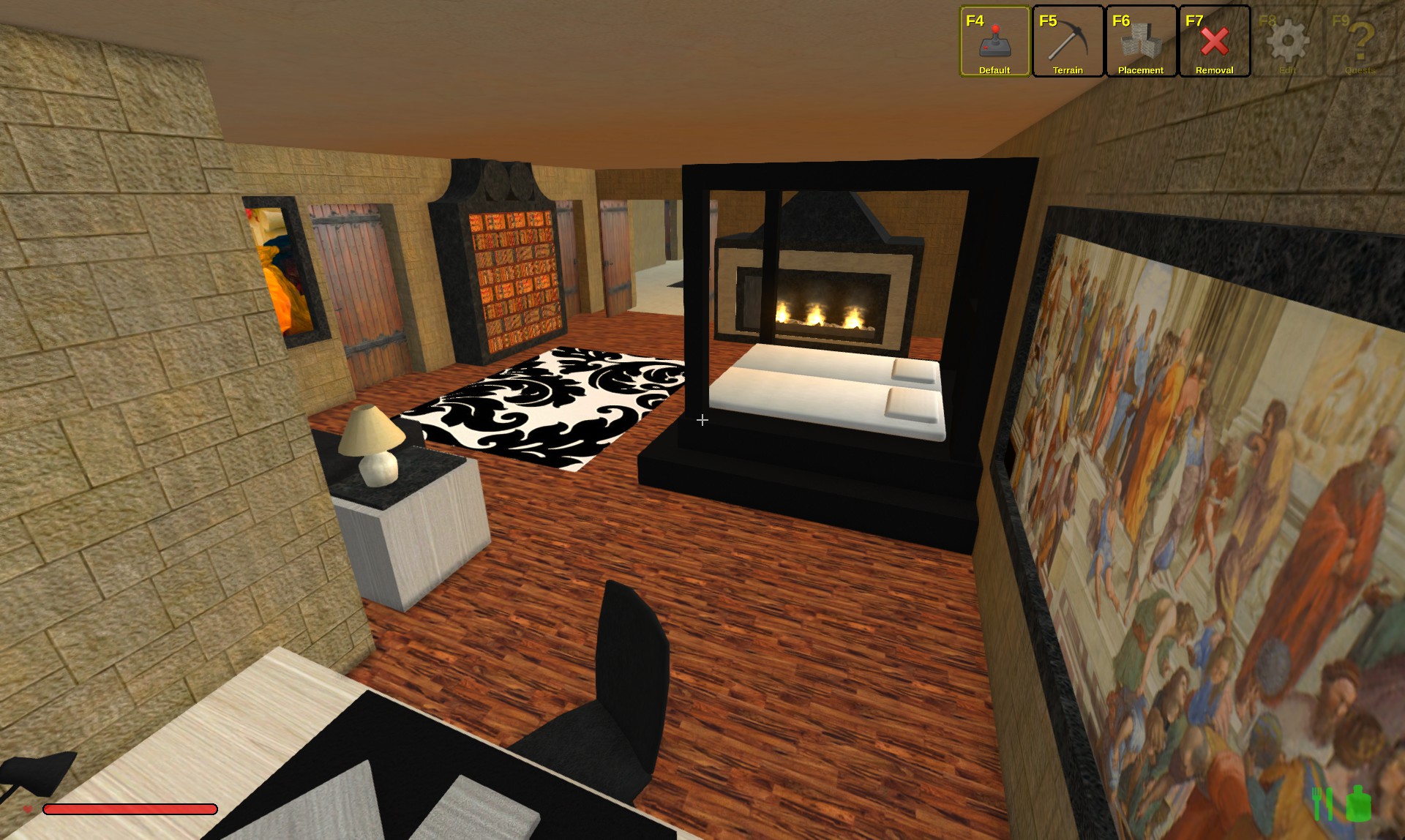This took me awhile to figure out. I was so happy to finally get the floor plan figured out, and get to decorating (the last steps) that I took some screenshots before I finished decorating, and I forgot to put some paintings up. The 2 rooms upstairs, on either of the master bedroom, I couldn't figure out what to do with, and I'm ready to move on to another project so they're empty. The kitchen area has all the crafting stations. It takes forever to make the books for the shelves, so I employed the use of posters there. I included all pictures I did remember to use. LOL