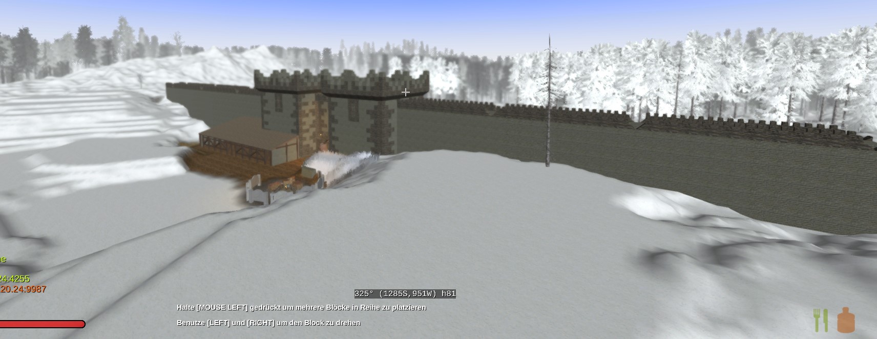 Winterfell ist vor Wochen an einen neuen Standort auf dem Server umgezogen , die arbeiten gehen vorran wenn auch Mühseelig und schleppend . Da ich mich nun in fast 3 Biomen austoben kann und eine Menge Ideen durch mein Dinogehirn wandern , habe ich kurzer Hand ein weiteres Projekt gestartet . The Great Wall of Westeros.