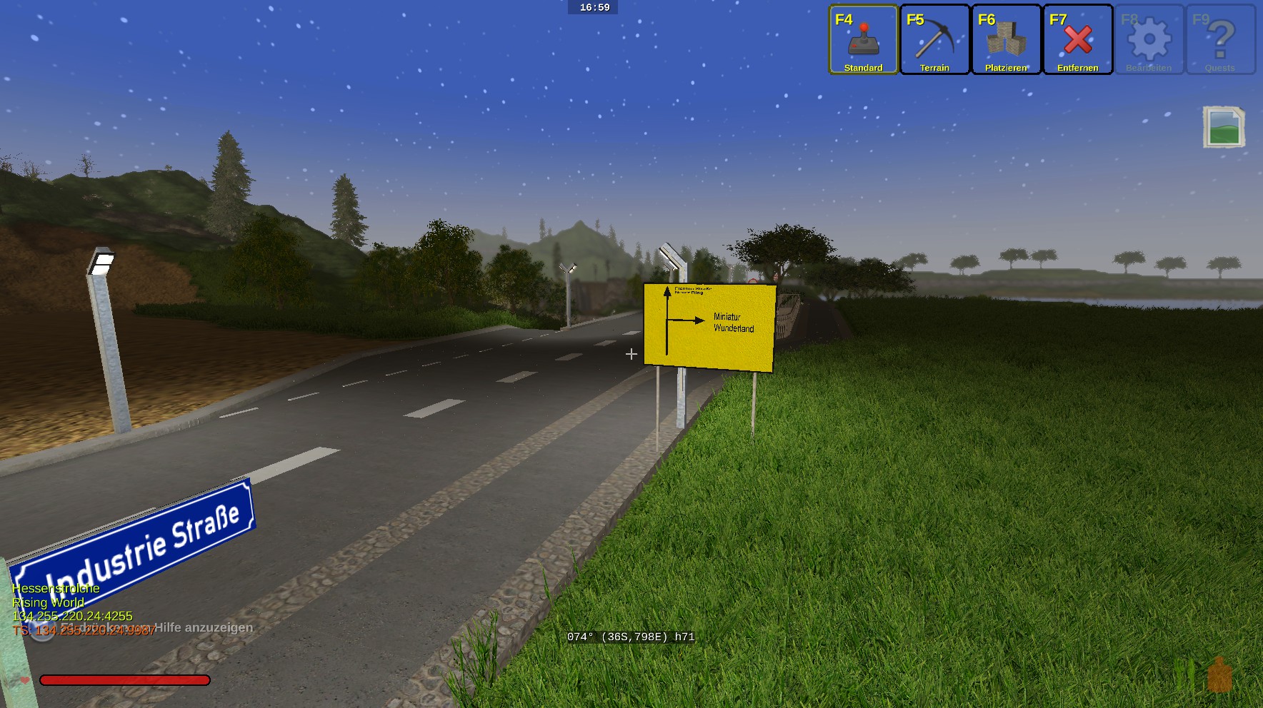 Unser Miniatur Wunderland ist vom Straßennetz her eine Nachbildung unserer Stadt Art-City, Im Land stehen alle Staßenschilder und auch Hinweise wo man grad ist, in Form von den echten Teleport Punkten.