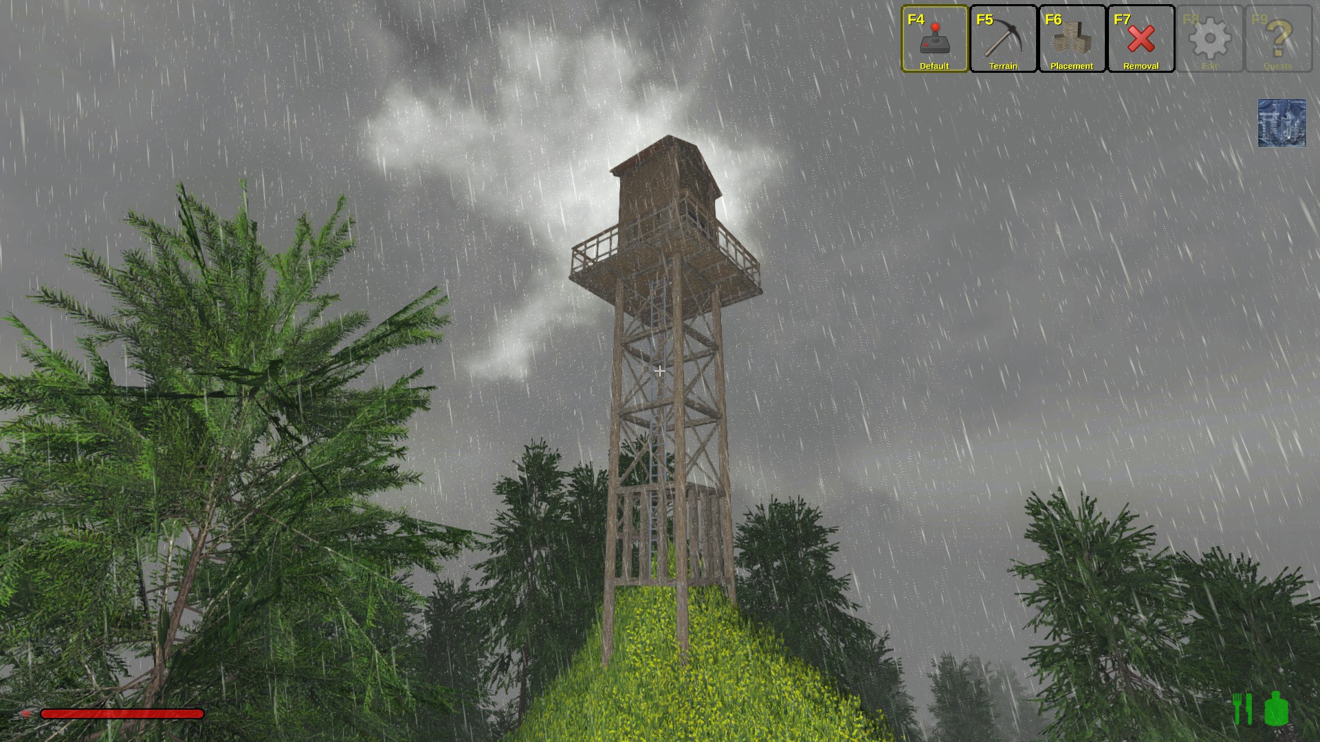 A simple tower. Can be used as a fire tower (old type), watch tower/ guard tower. The tower has a bed in the upper level, very simple, no decor - rustic look.