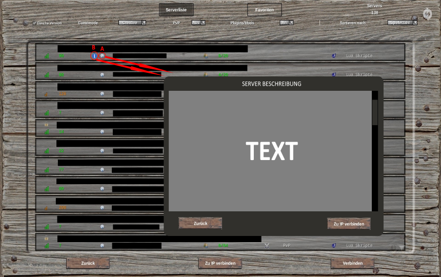 Er wäre doch toll wenn die Server Betreiber die Möglichkeit hätten Ihr Server in ein Pop-Up Fenster vorzustellen. Alles im Titel reinzupacken ist so gut wie unmöglich und gut ausschauen tut es eigentlich auch nicht.