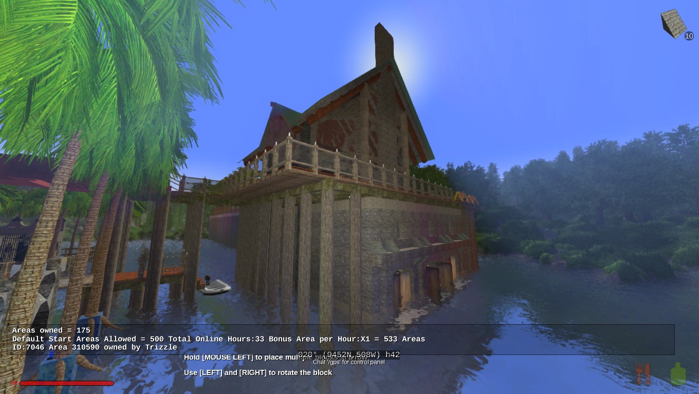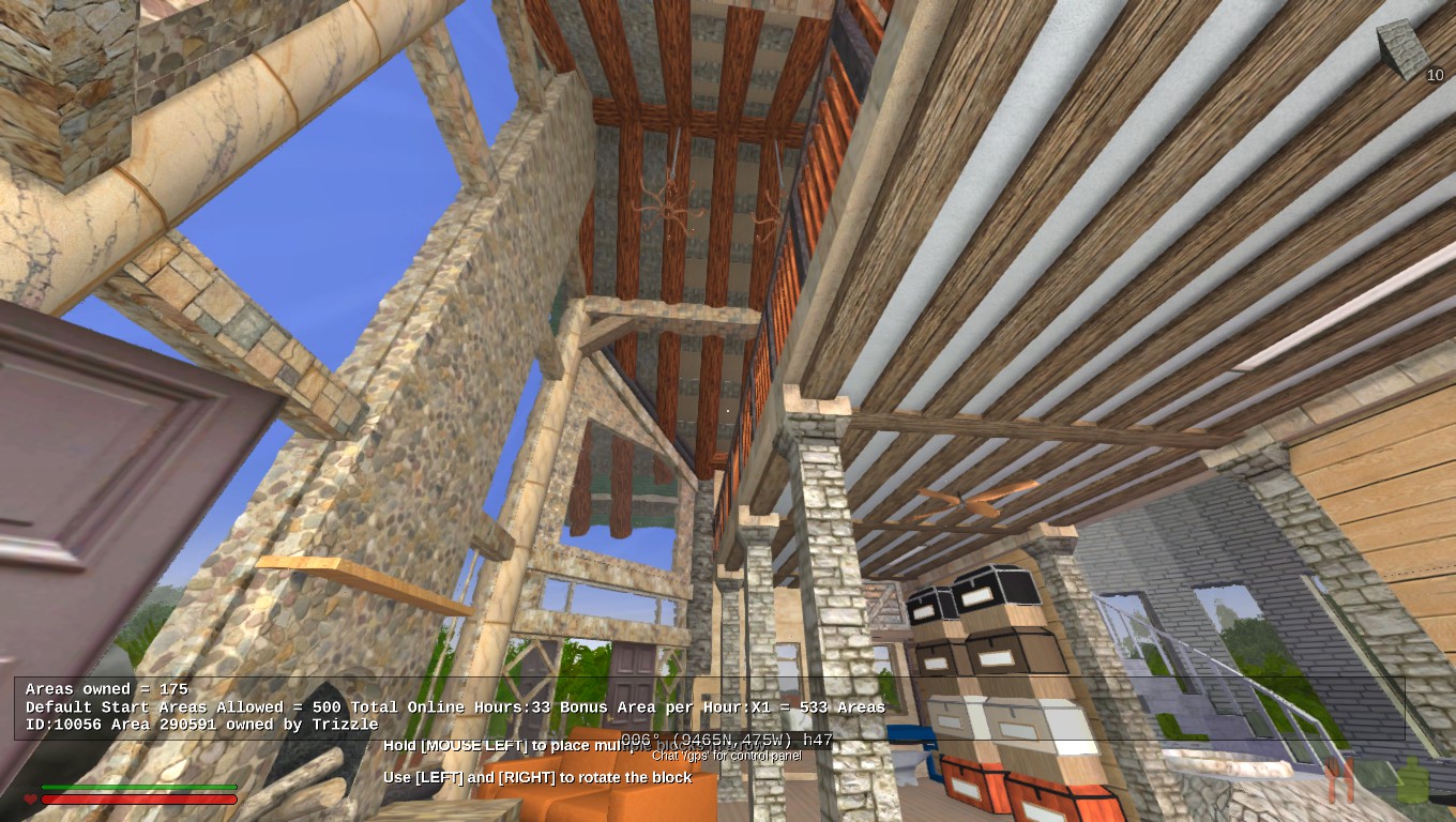 I'll go ahead and show the house build in progress. It's no where near finished but it keeps dipping my frames down from 200 to 30 something here and there and I've had to set all my settings down to low just so I can build without going crazy.