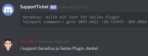 - Neu: Discord Befehl /support SPIELERNAME TEXT... um einem Spieler auf dem Server zu schreiben