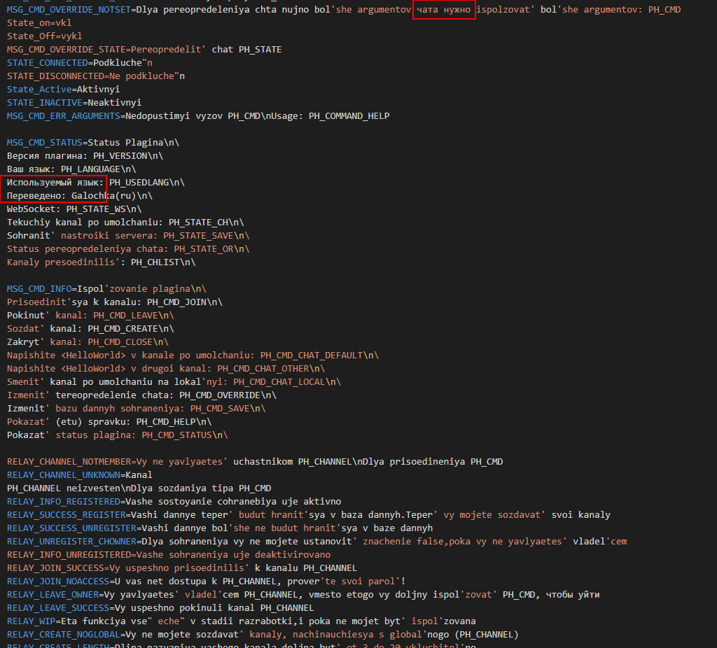 Spasibo za vashu pomoshch';) Yesli pridet bol'she tekstov, ya dam vam znat'. Yesli u vas yest' server, vy takzhe mozhete ukazat' defaultChannel = global-ru v settings.properties. Kak tol'ko drugiye rossiyskiye servery ili igroki sdelayut eto, vy mozhete pisat' drug drugu.