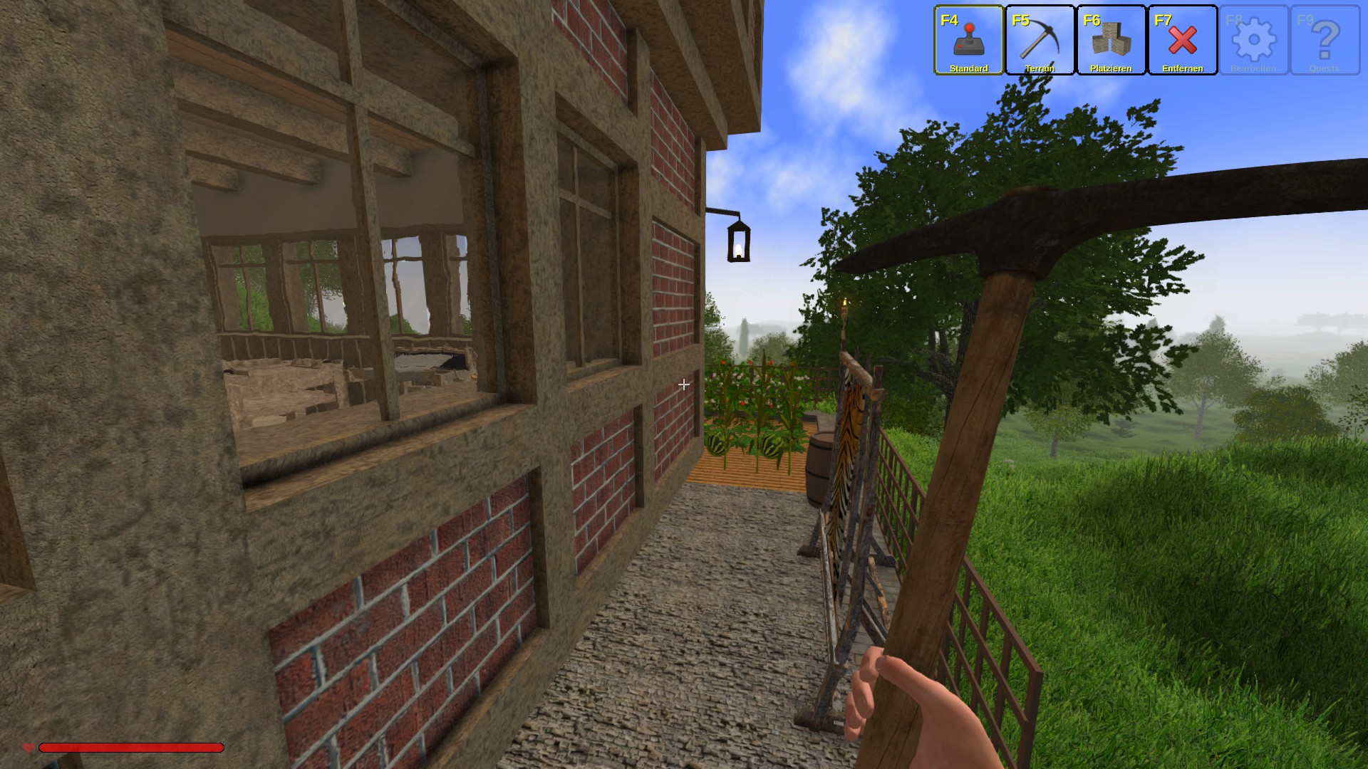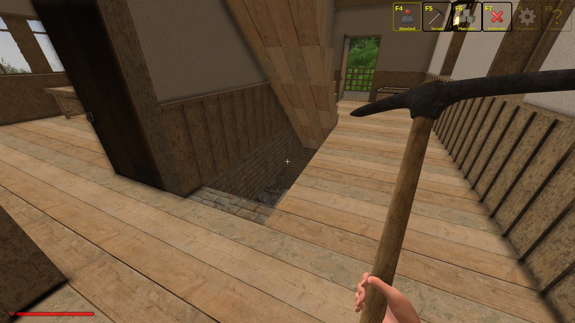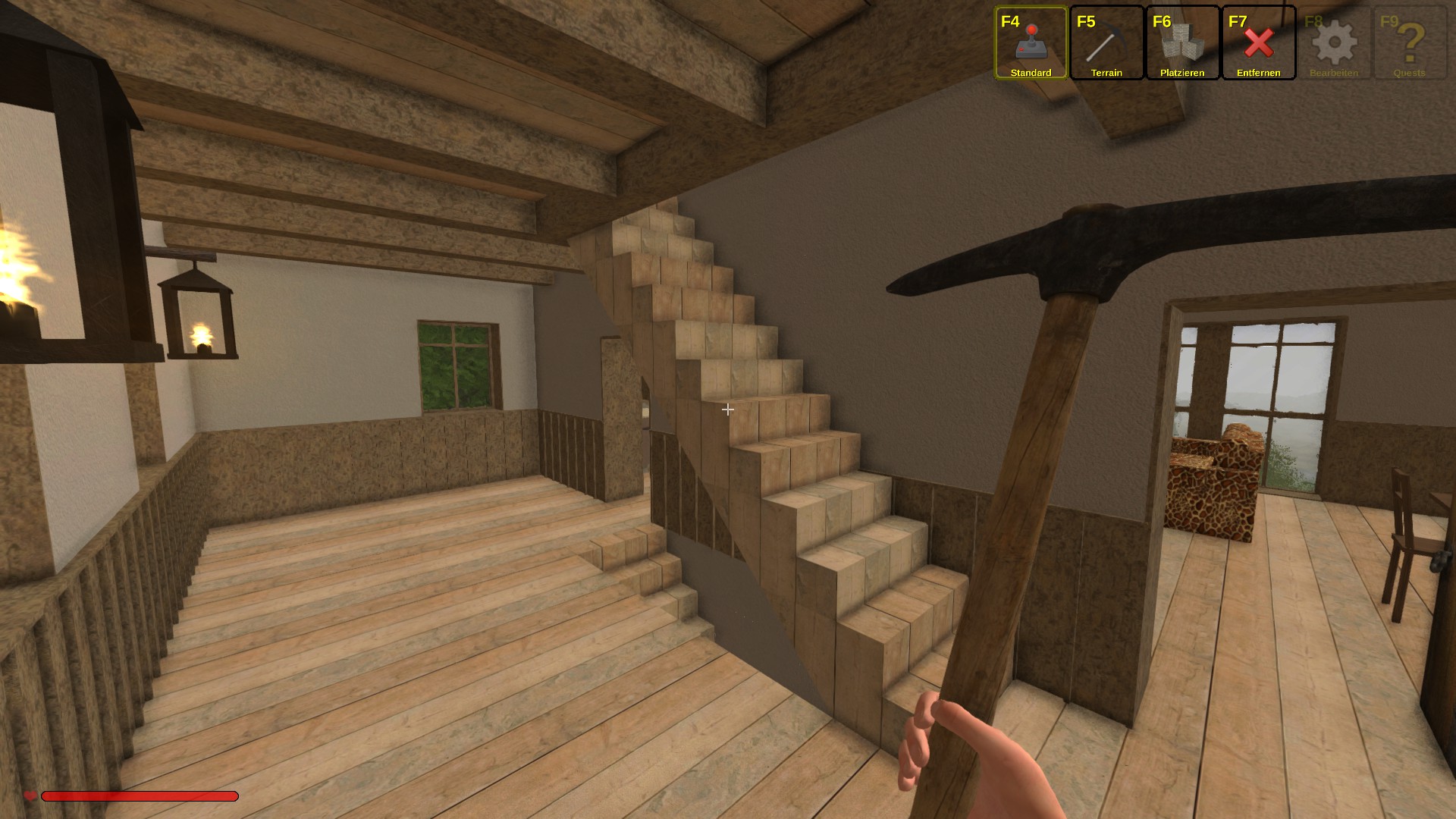 I built it on a cave hole, therefore the half basement stairs...