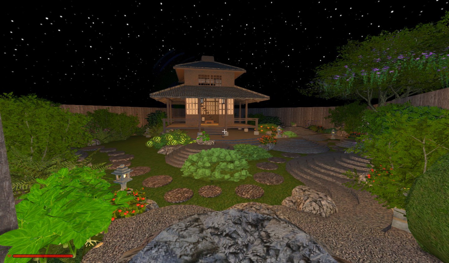This 40x40 box includes a tea house and a garden with rock stones and premade spots on which you can plant your veggies. Terraforming is not required, you can even place the box in the air.