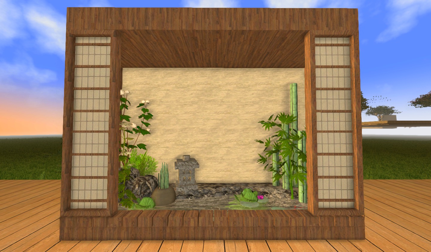 Once completed, this decor is very cheap minimalist : you need 1 hemp, 1 carrot, 2 lettuces, 2 hogweeds or cotton.