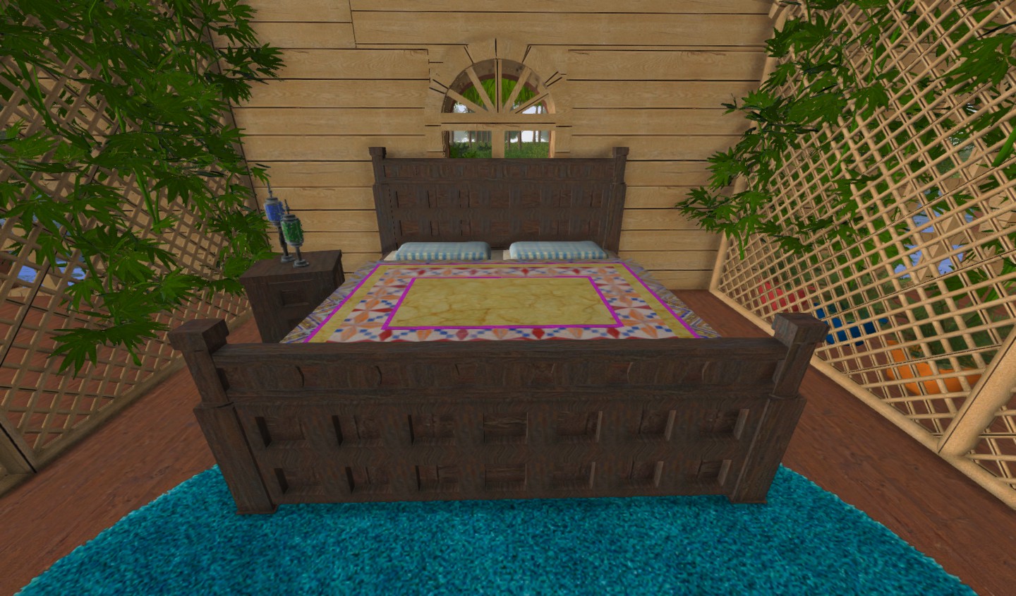Jul 26th 2019 #2 What a great room. That footboard is great. I love the trellis and plants too. Thanks for sharing!