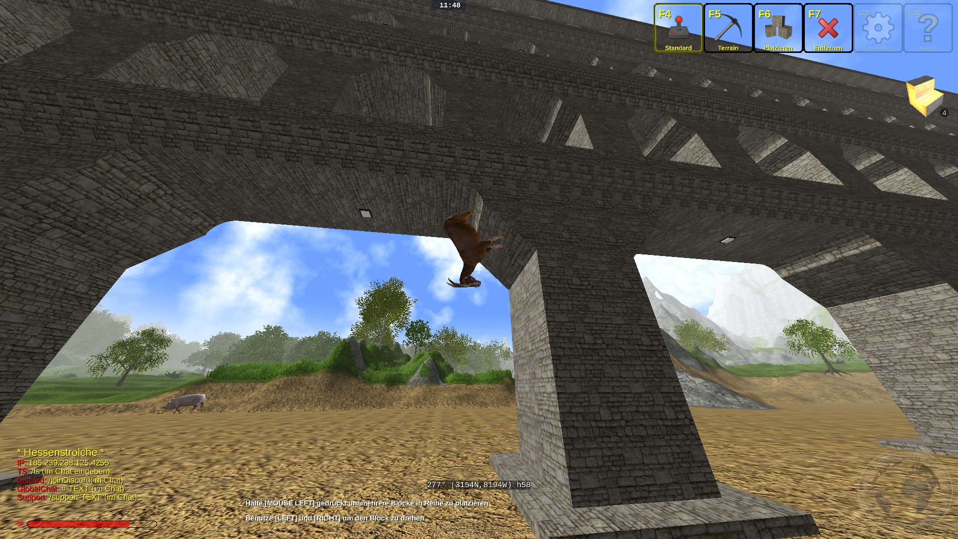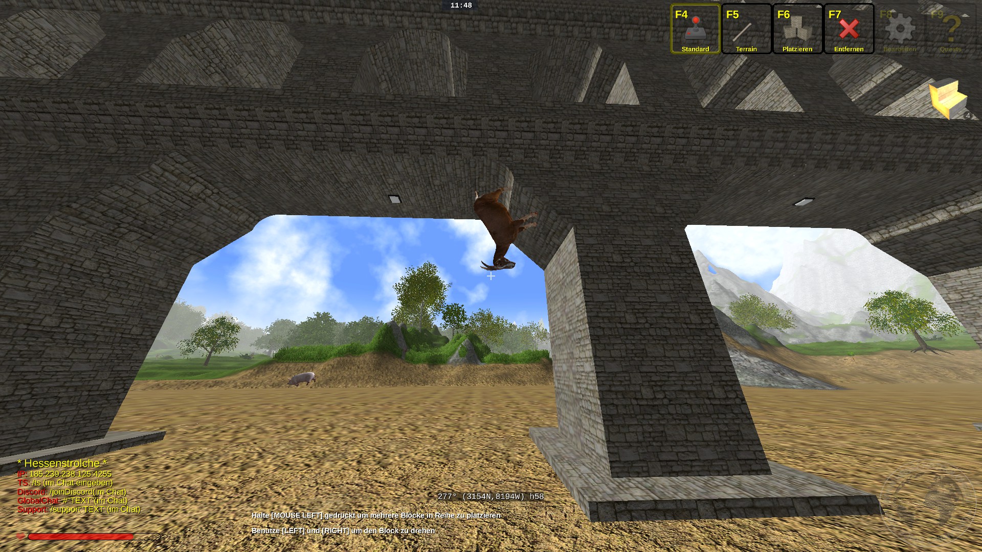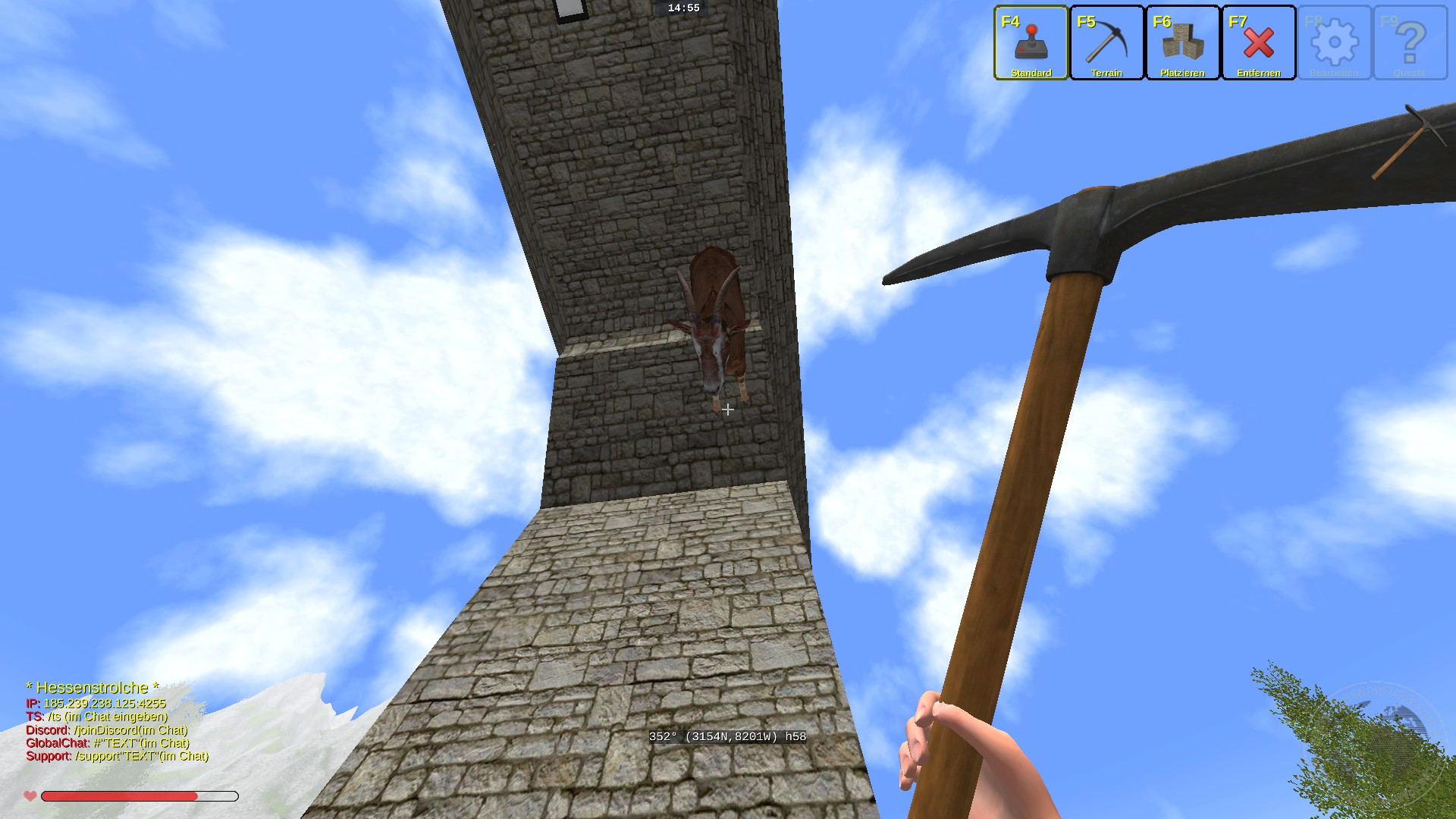 @red51 ich kann leider nicht sagen ob die ziege vorher schon da reingebuggt ist. das aquädukt wo die im pfeiler steht ist ca 10 km lang da sieht man leider nur sporadisch wenn sowas passiert . möglich das die vorher schon da war und jetzt erst einen weg raus gefunden hat, aber das ist nicht wirklich schlimm irgendwie finde ich das als spezial schon klasse, so eine ziege mit magnethufen hat nicht jeder bei sich auf dem server