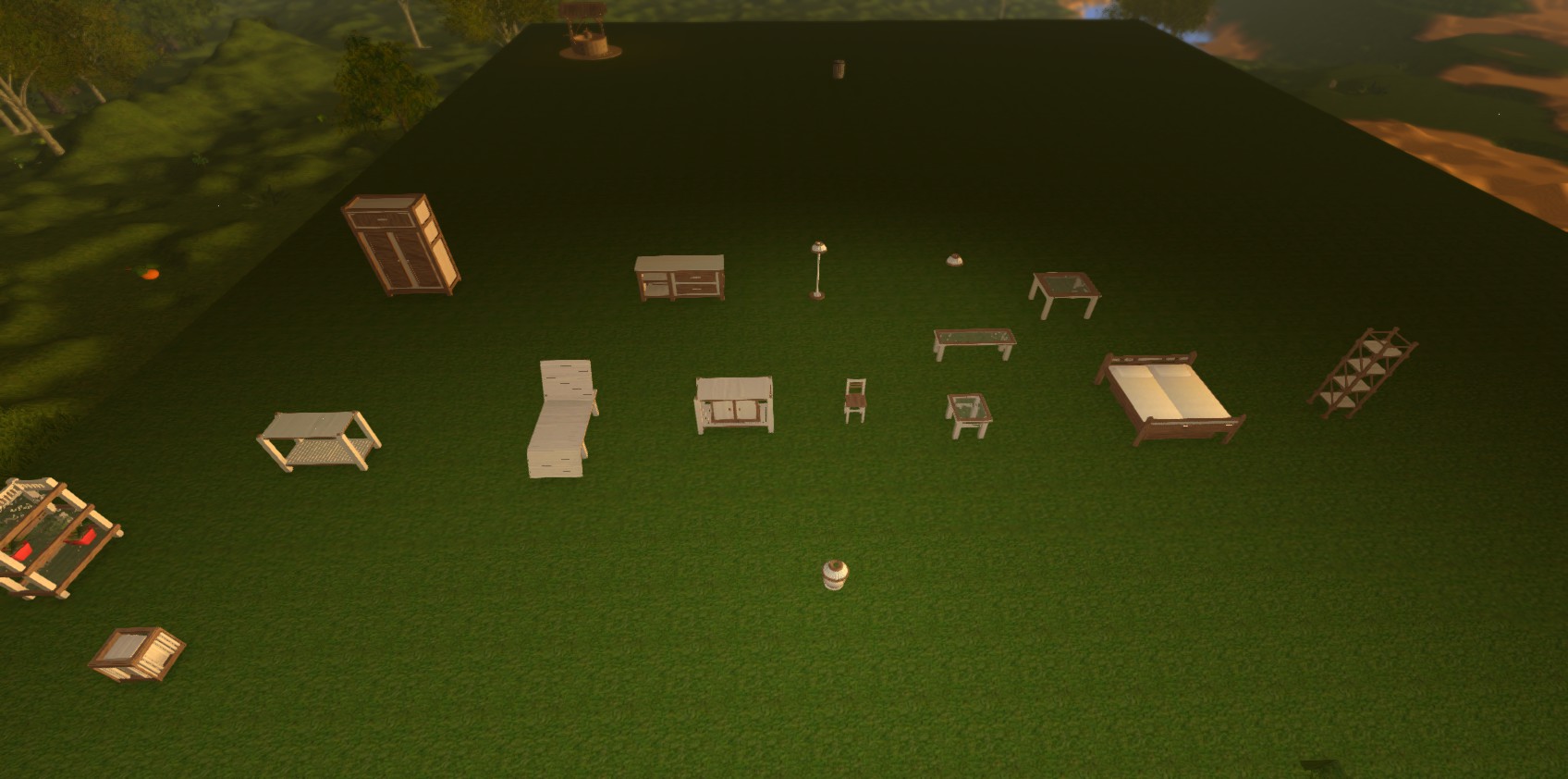 i made all the simple furniture as a begginer its not perfect but its still useful for filling up your house ,all the furniture bellow matches, suit modern build style, the lights work