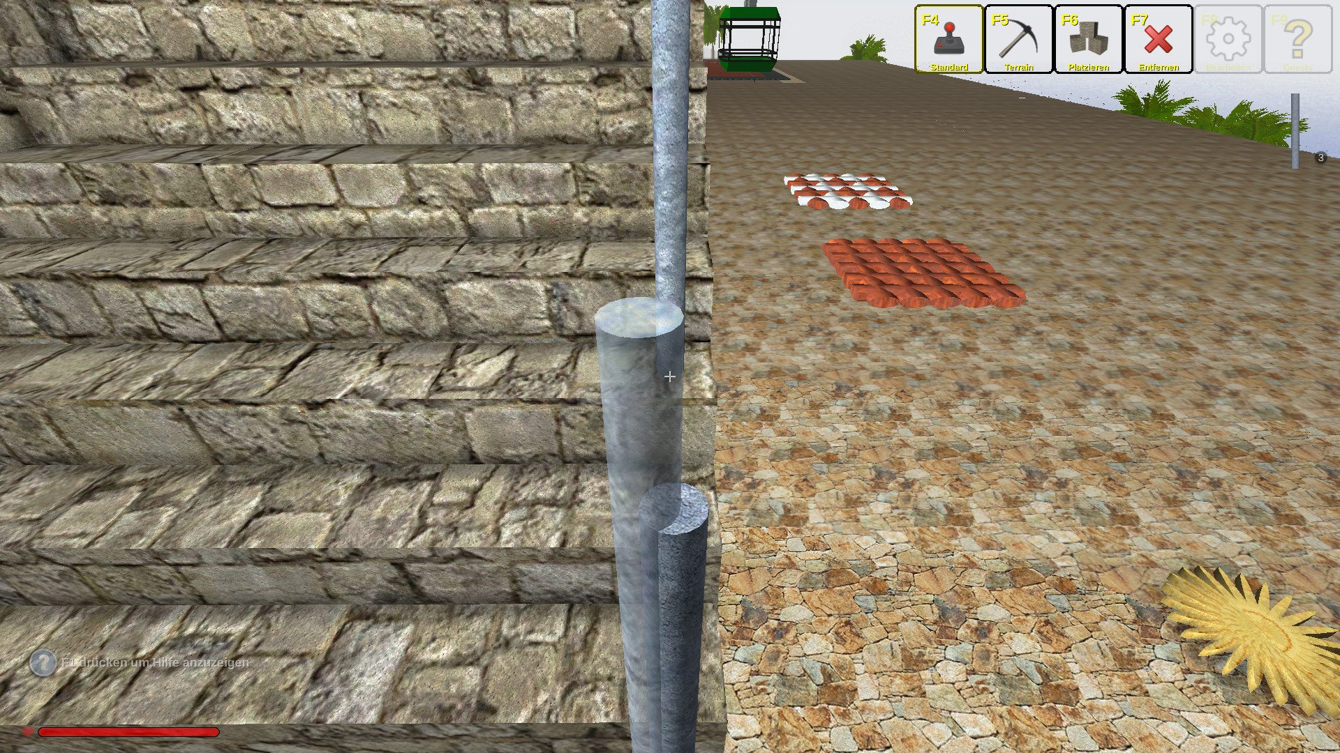 Des weiteren habe ich an einer Treppe Pfosten für ein Geländer gesetzt, dabei musste ich noch mal zurück ( ausgeführt habe ich das Zurück mit setp 15 und der Pfeiltaste nach links. unten angekommen war der Pfeiler versetzt. Weis da jemand was ich falsch mache oder ob es an etwas anderem liegt