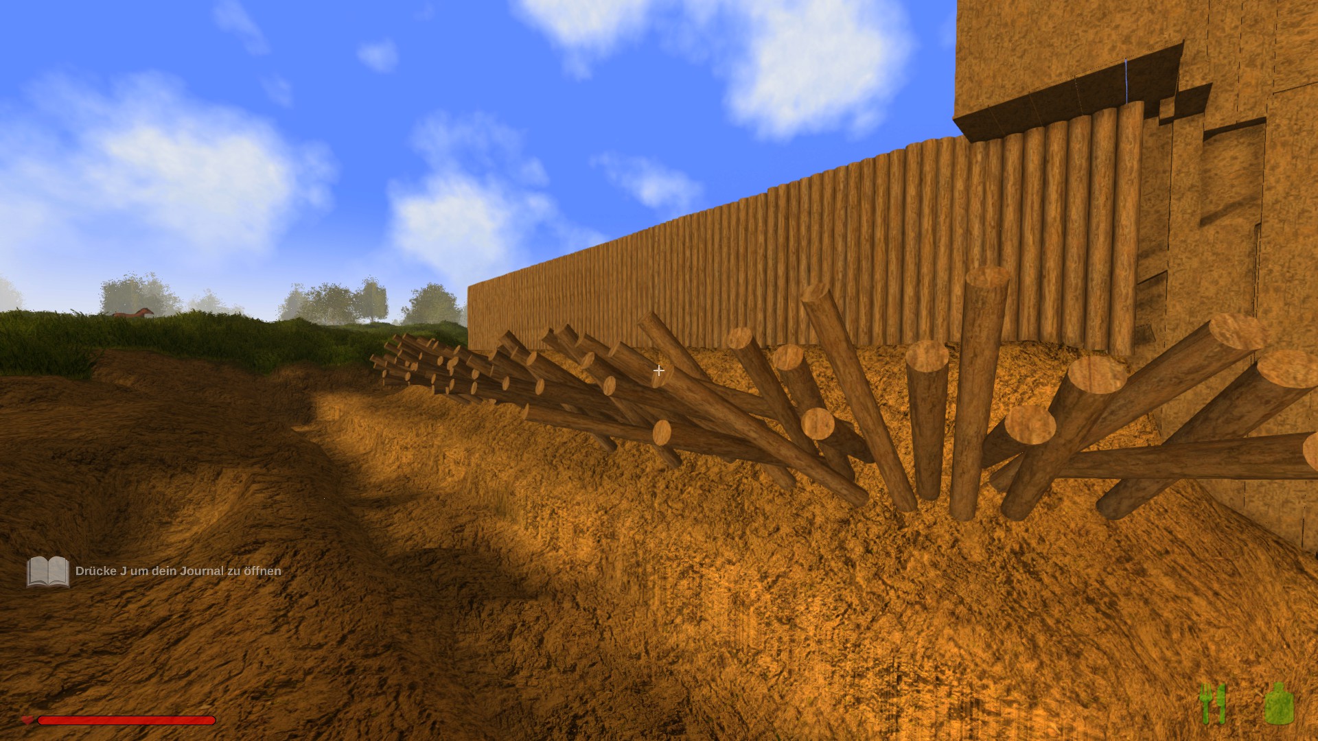 Ich habe mir ein gemütliches Lager mit ein paar Hütten und einer Palisade gebaut(Survival) und beim befestigen ist mir aufgefallen, dass es zwar Rundhölzer gibt, aber keine Möglichkeit, diese anzuspitzen. Optimal wäre, wenn man ein Bauteil Hätte, welches man einfach über das modulare bauen andocken kann. Anderenfalls sieht meine Palisade weiterhin so aus:
