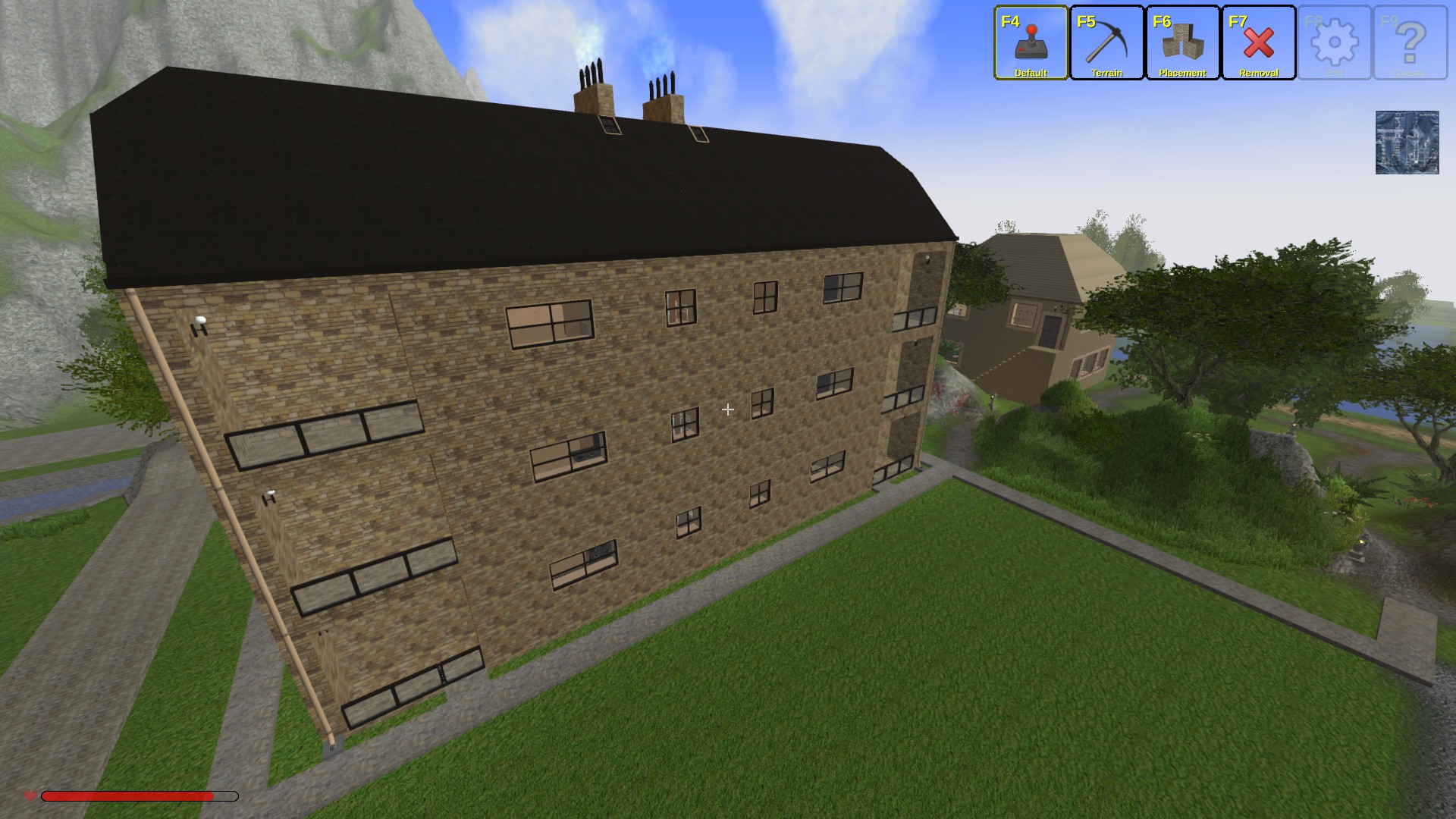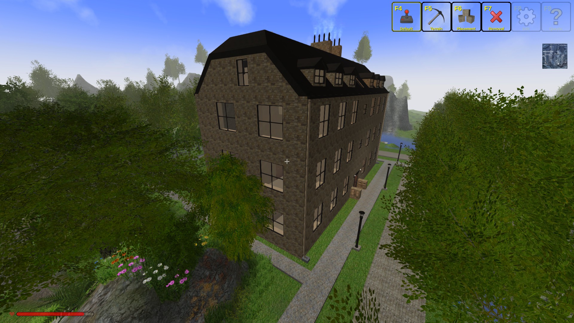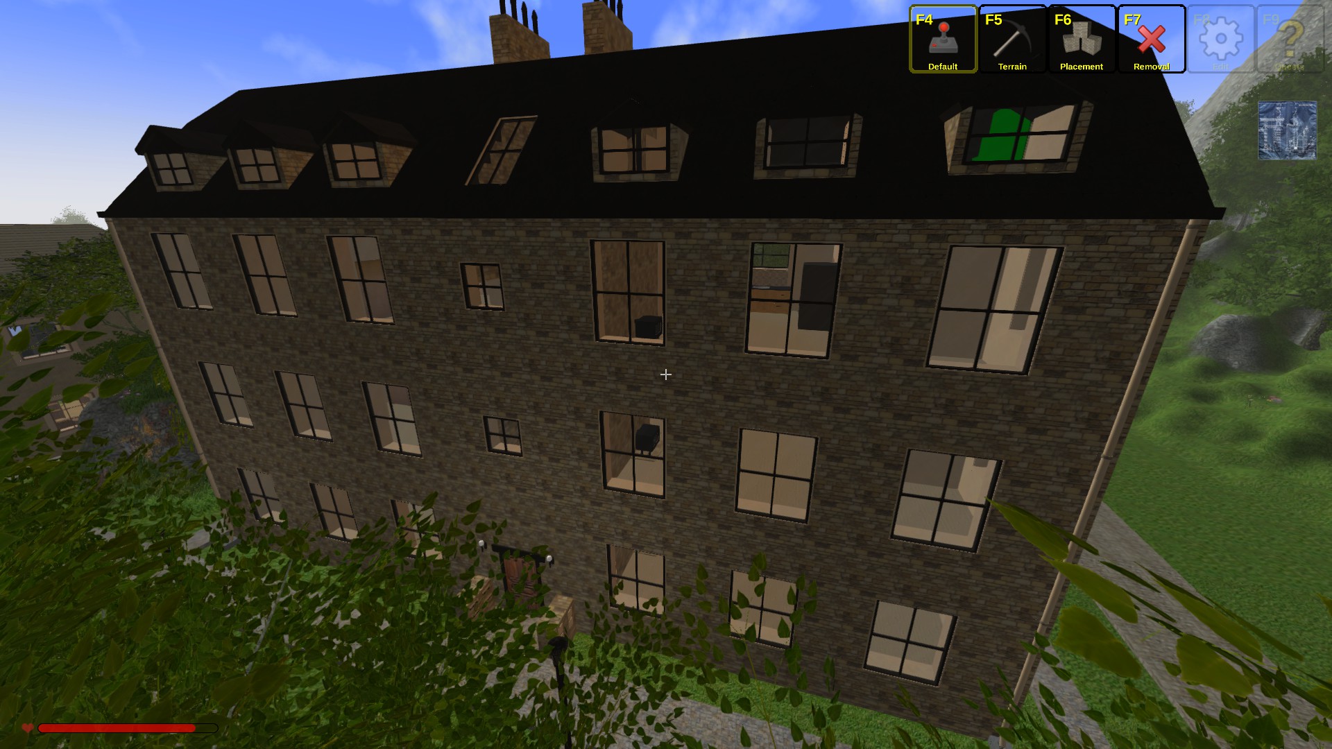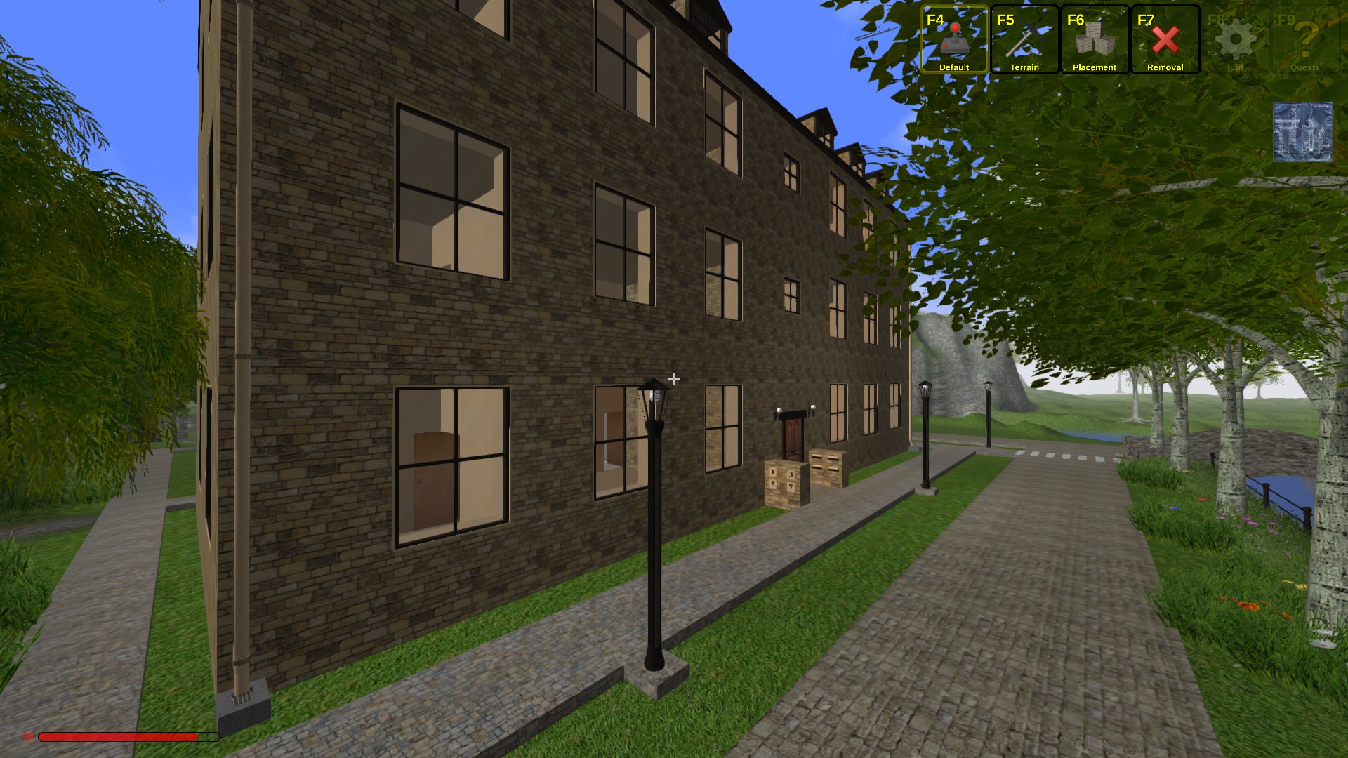 I have created a block of flats, 6 two bedroom flats and 2 one bedroom studio Attic flats. The numbers are posters. The flats have kitchens, bathrooms and heater but no furniture
