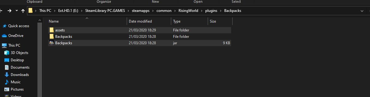 Che82 Thanks for the screenshots! The problem is you have an additional "Backpacks" folder in "/plugins/Backpacks/" (i.e. /RisingWorld/plugins/Backpacks/Backpacks/...). Unfortunately that doesn't work. Please move the inner "Backpacks" folder to the "plugins" folder, so it looks like this: /RisingWorld/plugins/Backpacks/...