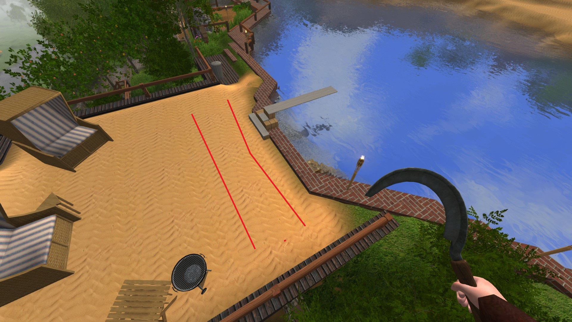 Was mir gerade aufgefallen ist: Wenn man bei Regen innerhalb eines Gebäudes aus Holz herumläuft, macht es teilweise Holzgeräusche wie es sein sollte, stellenweise aber auch "schmatzende" Geräusche, als wenn man durch Matsch läuft. Dabei hatte ich doch extra die Schuhe abgeputzt... ![]()