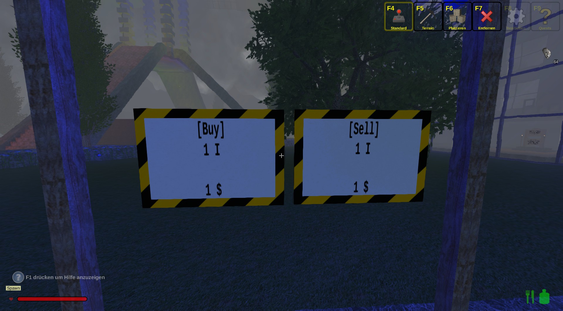 - Muss mal schauen, ob die die Aussage: "WICHTIG: Am Anfang dürfen nur Admins diese Schilder erstellen!" noch aktuell ist. Damit wollte ich noch sagen, dass es auch UserSchilder gibt, die jeder aufstellen kann, außer wenn man es in der Config verbietet. Beispiel: UserShop (gibt es jetzt noch nicht) - Mit UserShop kann ein Spieler seine Items, die er nicht mehr brauch, verkaufen. Dieses Schild kann jeder bauen. (Wenn in der Config es natürlich aktiviert und erlaubt wurde)
