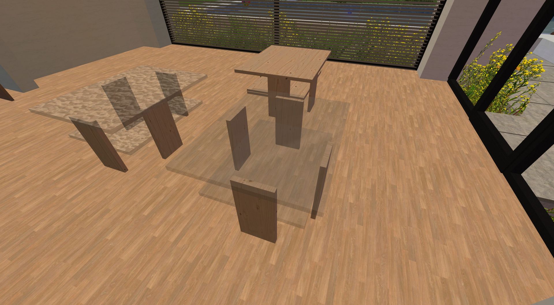 Recently someone had asked about furniture. Here are my two modern tables, a wooden table and a glass table.