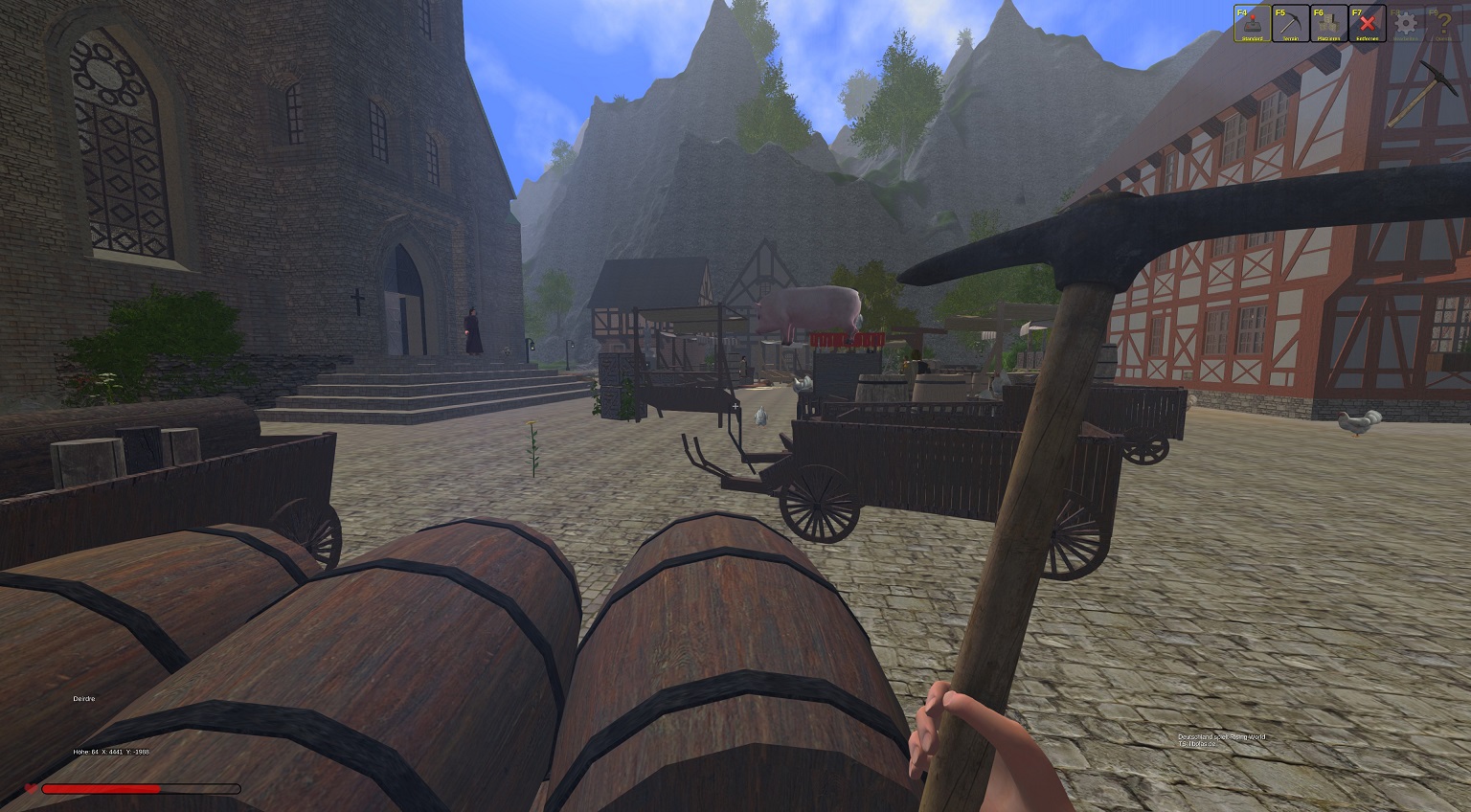 Einige meiner Npcs sind wieder auf dem Dach, ein Schwein hat in der Luft seine Kreise gedreht