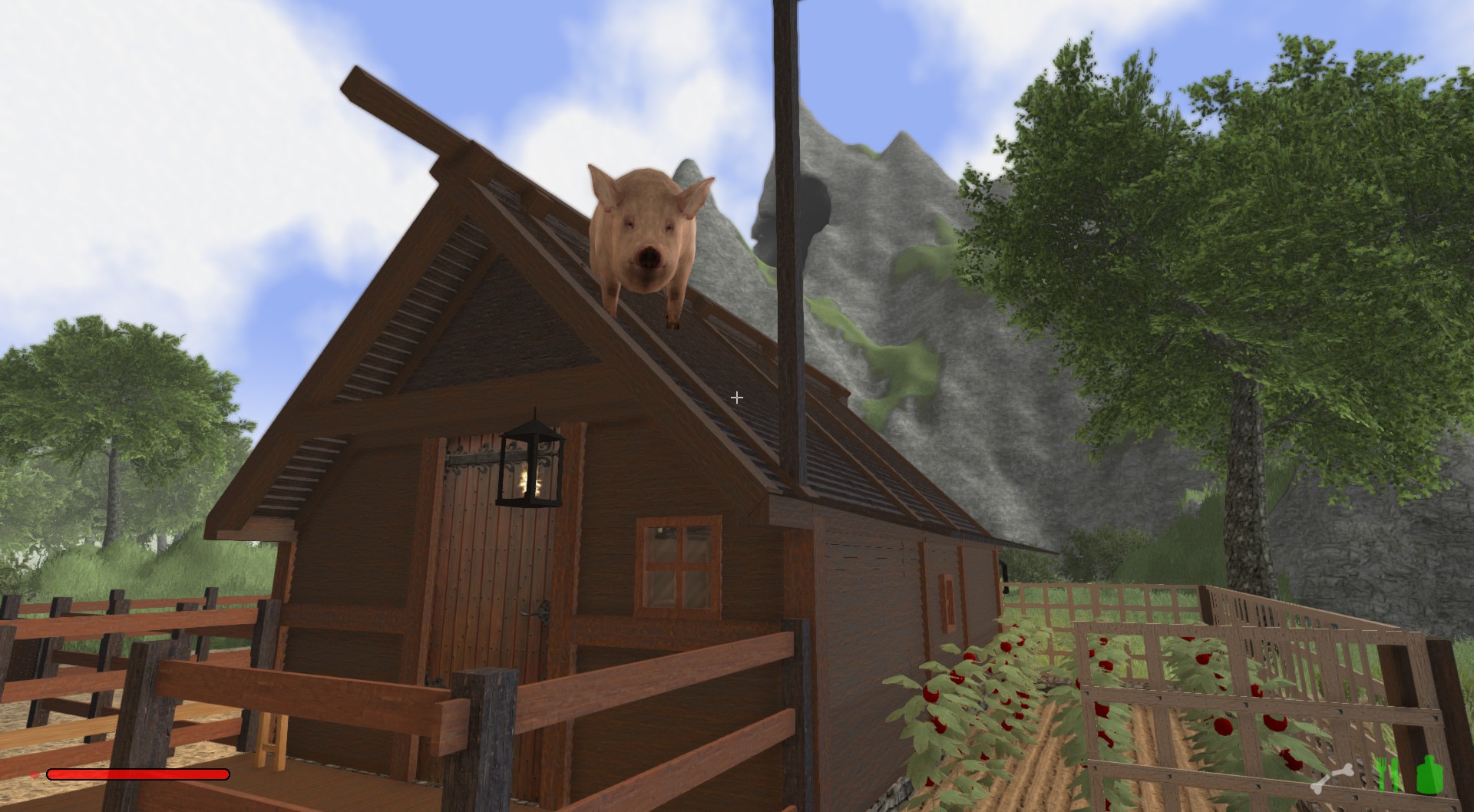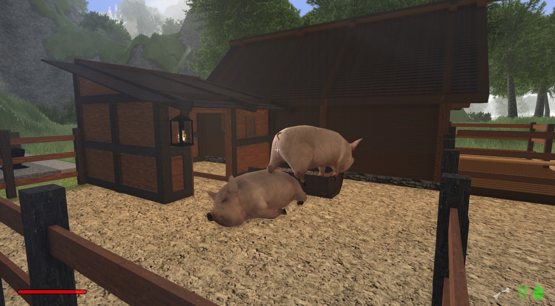 Ich habe eine halbe Stunde ein Gatter um mein Schwein herumgebaut und dann war das gute Tier