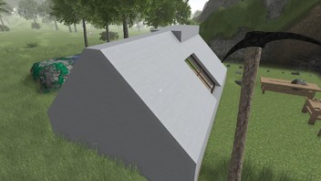 Habs mal grob nachgebaut. Das einzige was nicht gut funktioniert sind die Fensterrahmen, aber der Rest geht ohne Probleme. Die Holzleisten sind auch lang genug und zur Not nimmste zwei und es schaut auch nichts raus. Du kannst auch verschieden Dachvariationen nehmen. Ich möchte damit nur zeigen, dass es funktioniert.