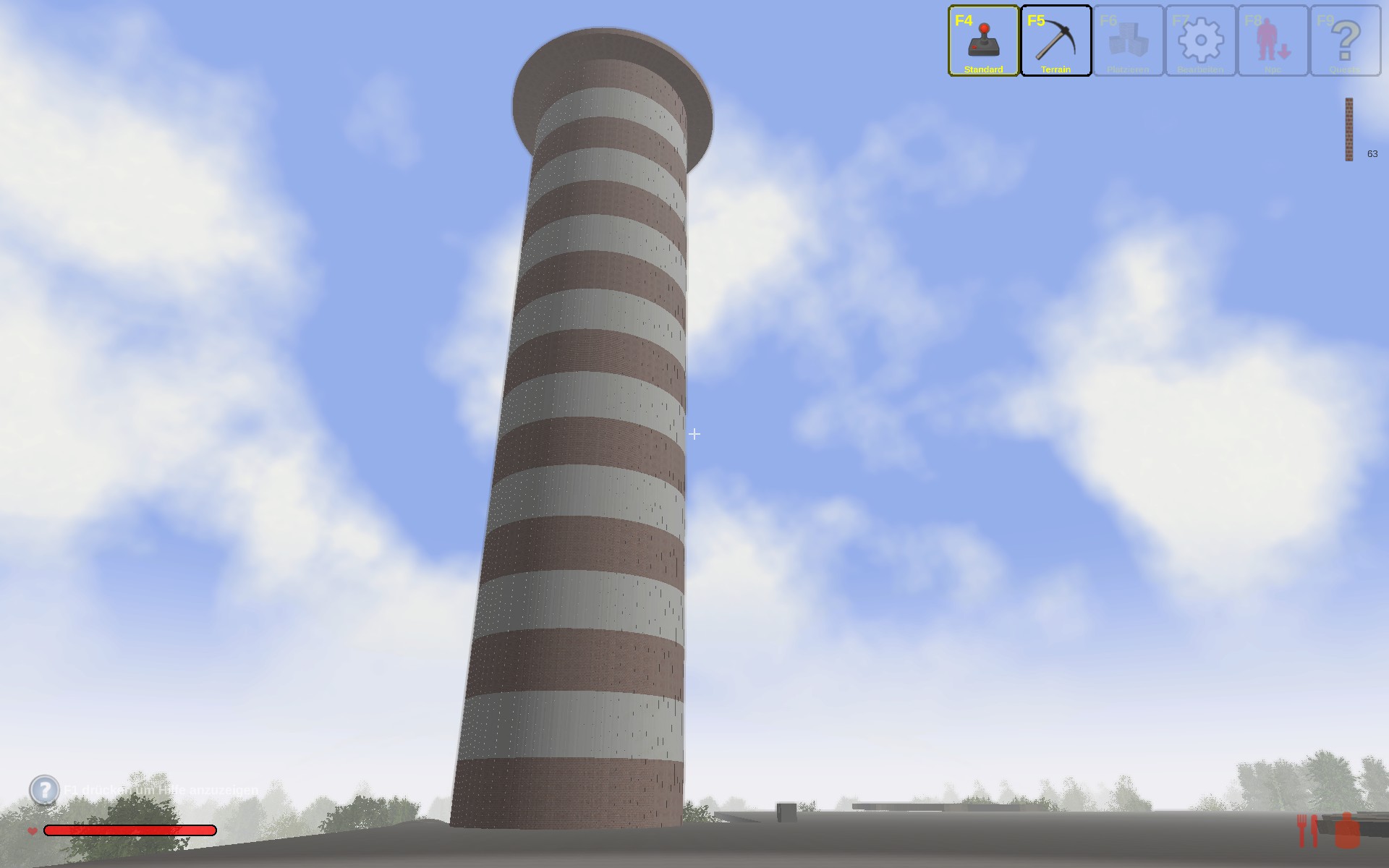 joaber die wirkliche wucht des turms und die reelle grösse gibt die sichtweite iwo nicht her pro ring sind das 5 block höhe . aussen druchmesser 20 block