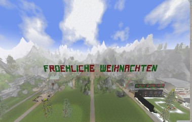 Das Merry Christmas Schild ist 43 Bloecke lang und das Froehliche Weihnachten