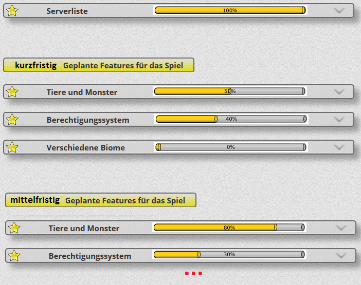 Und ja: Es wurde schon mal versucht sämtliche Ideen zu sammeln, aber das meine ich damit garnicht, sondern wirklich ausschließlich die Planung des Teams. Und das dann natürlich in großen "Oberthemen" zusammengefasst, damit es handhabbar wird. Quasi so wie es da schon steht, nur mit etwas mehr Informationsgehalt zum Fortschritt und der groben(!) Zeitplanung.