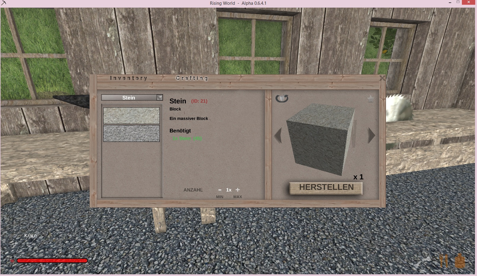 - Der andere soll alles Material, z.b. Stein, im Inventar (ich hatte 45 Stein im Inventar) umwandeln. Bei 20 Stacks wären das dann 1280 Einheiten auf einen Schlag.