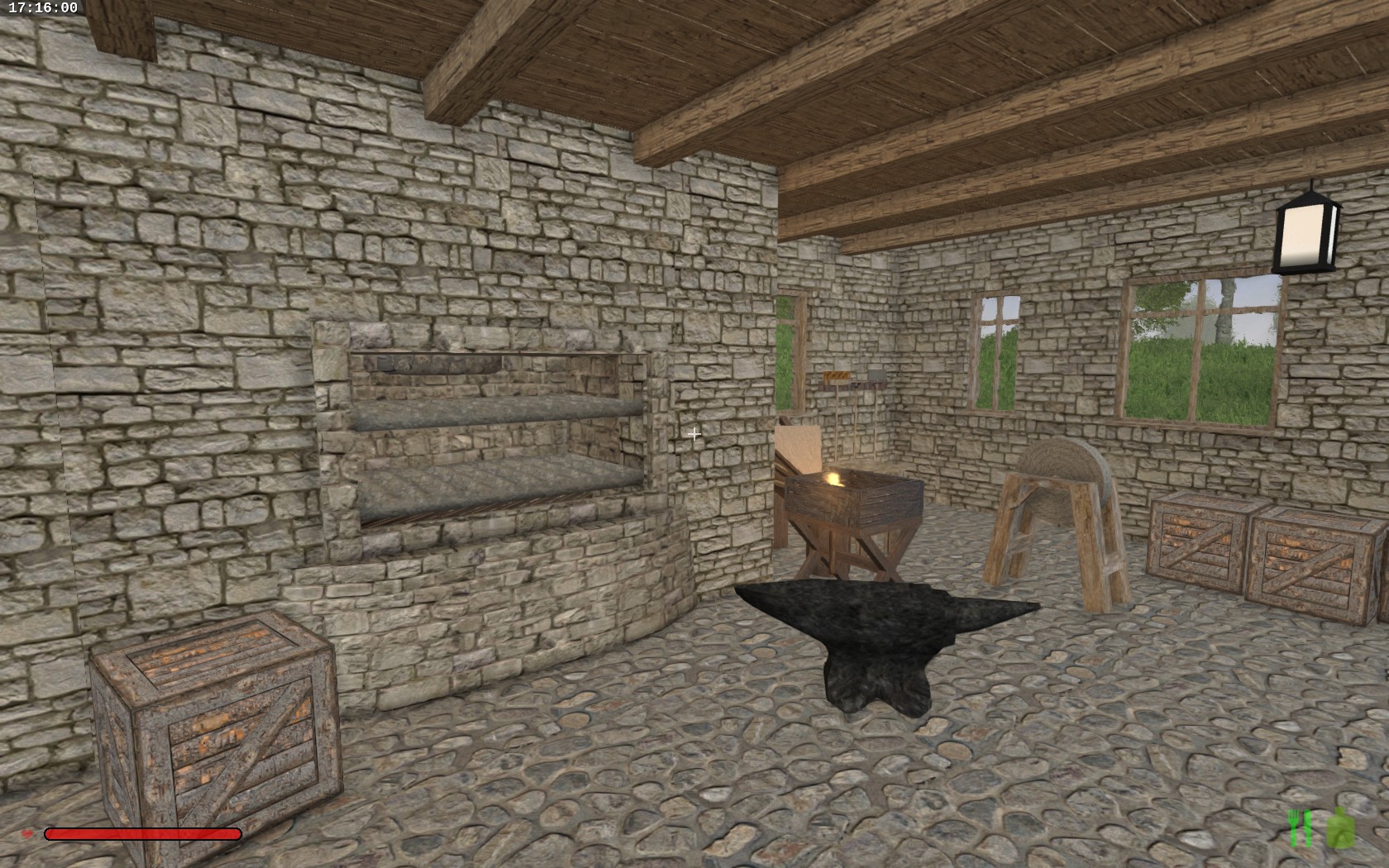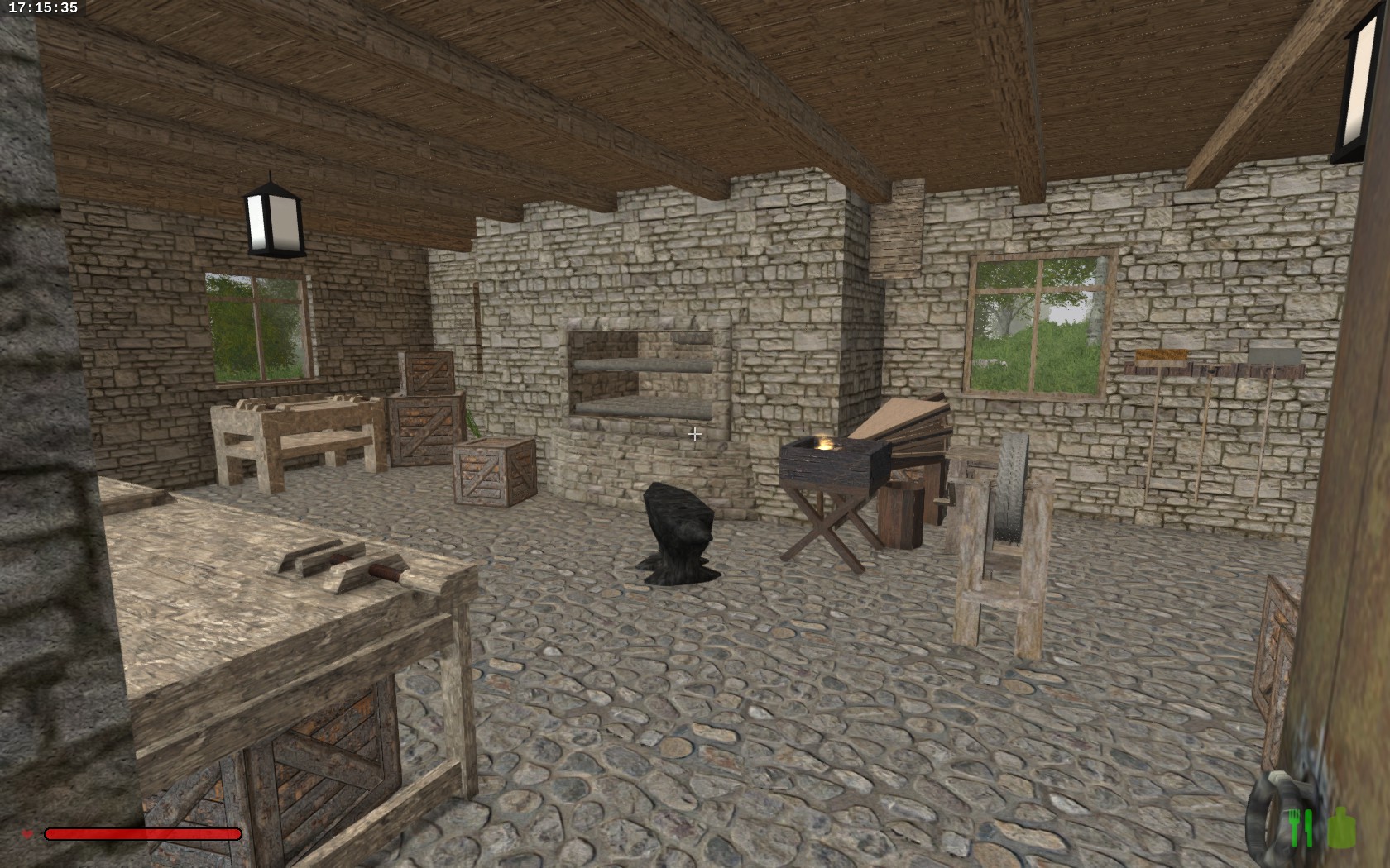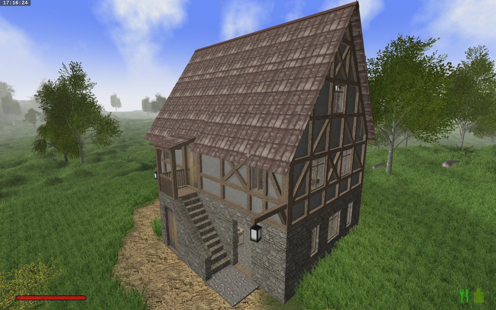 I have something for you again, this time an old house with a blacksmith's workshop. On the ground floor is the workshop with workbenches and an integrated melting furnace. Outside is a toilet attached, which includes a trash. On the first floor is the living area with fireplace and a separate "spa". Upstairs under the roof there is a small sleeping chamber. The rest of the attic you can make according to your wishes, it is almost multifunctional.
