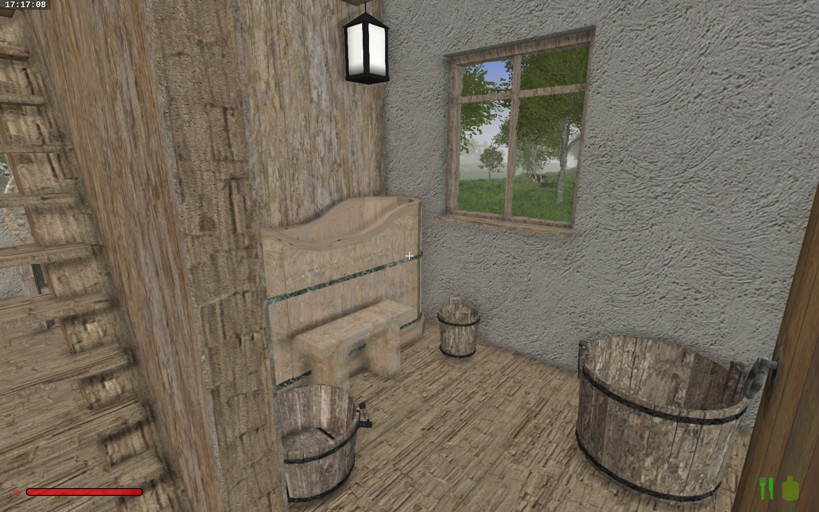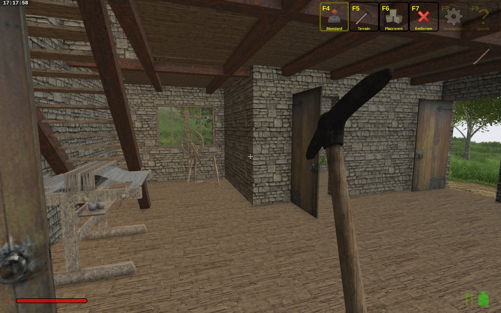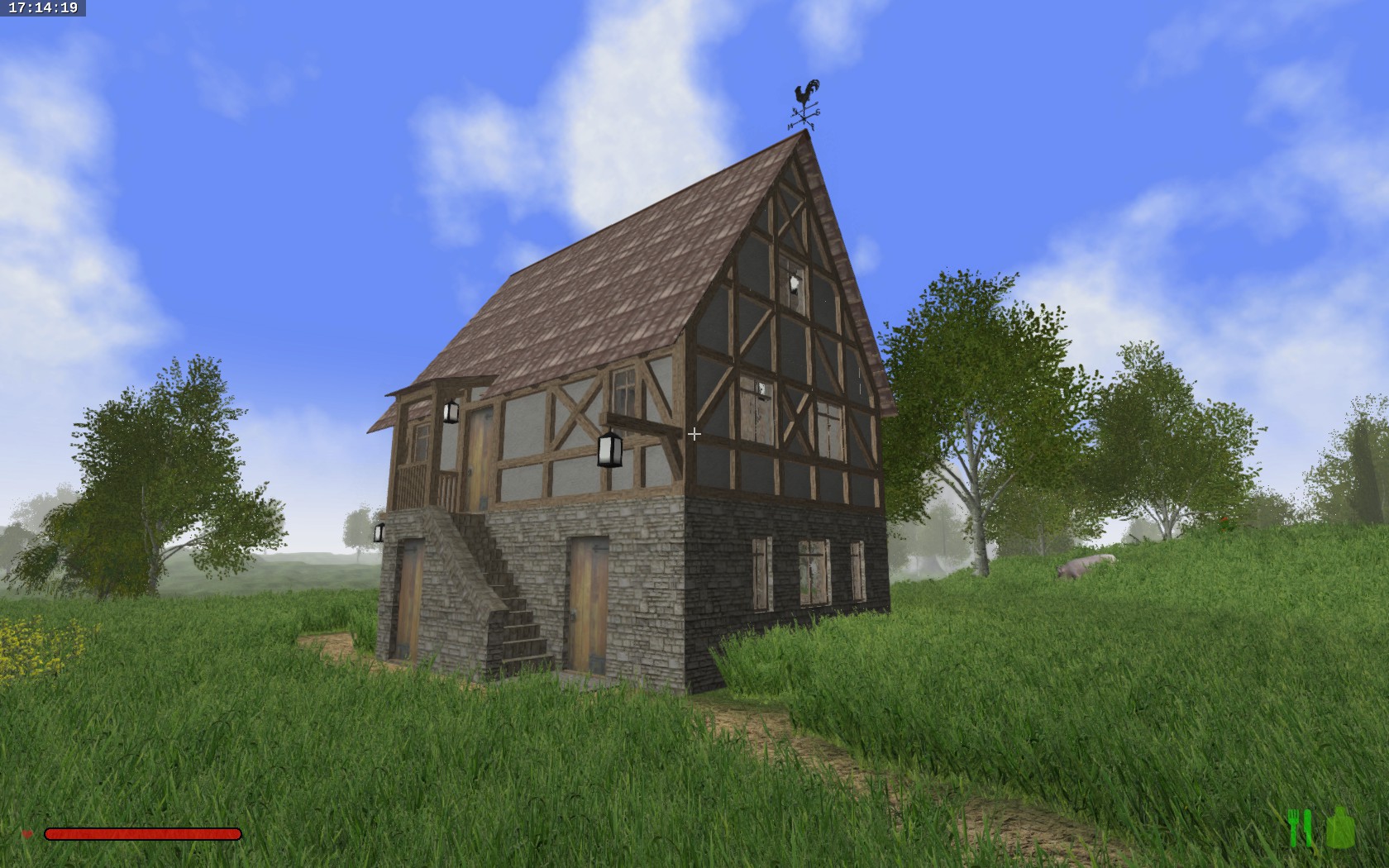 I have something for you again, this time an old house with a blacksmith's workshop. On the ground floor is the workshop with workbenches and an integrated melting furnace. Outside is a toilet attached, which includes a trash. On the first floor is the living area with fireplace and a separate "spa". Upstairs under the roof there is a small sleeping chamber. The rest of the attic you can make according to your wishes, it is almost multifunctional.