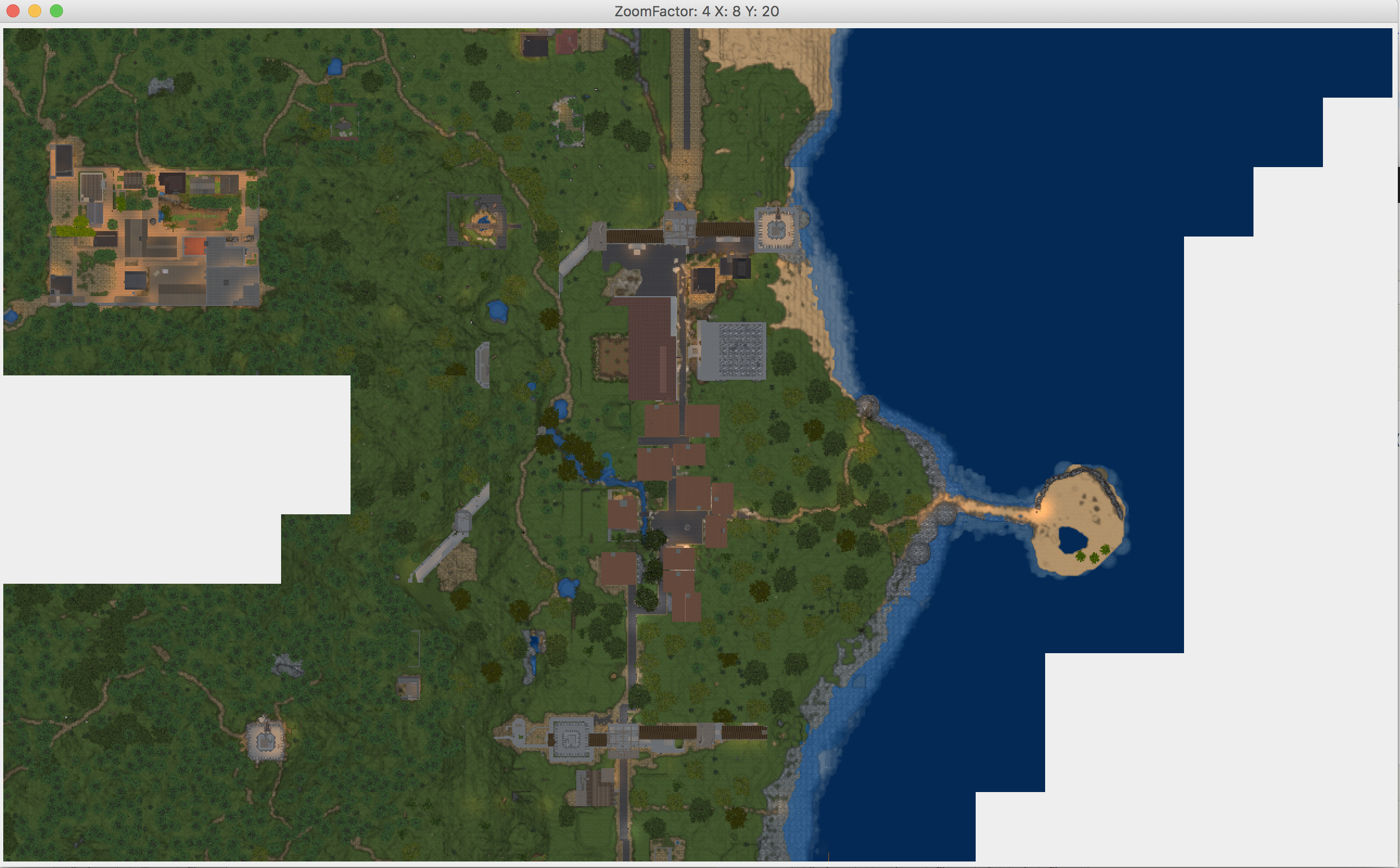 After selecting the directory, the program scans all tiles and shows a map of a region near spawn, looking like this: