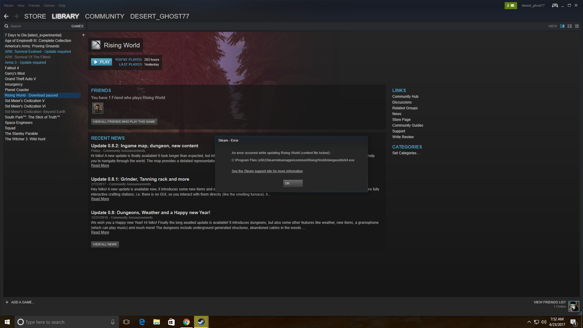 Ive verified cache, states a file is locked. Uninstalled, re-installed. Deleted Download Cache and restarted Steam. Not sure what else to do. I did provide a screenshot that shows the file name. If you need more info I can try to obtain it.