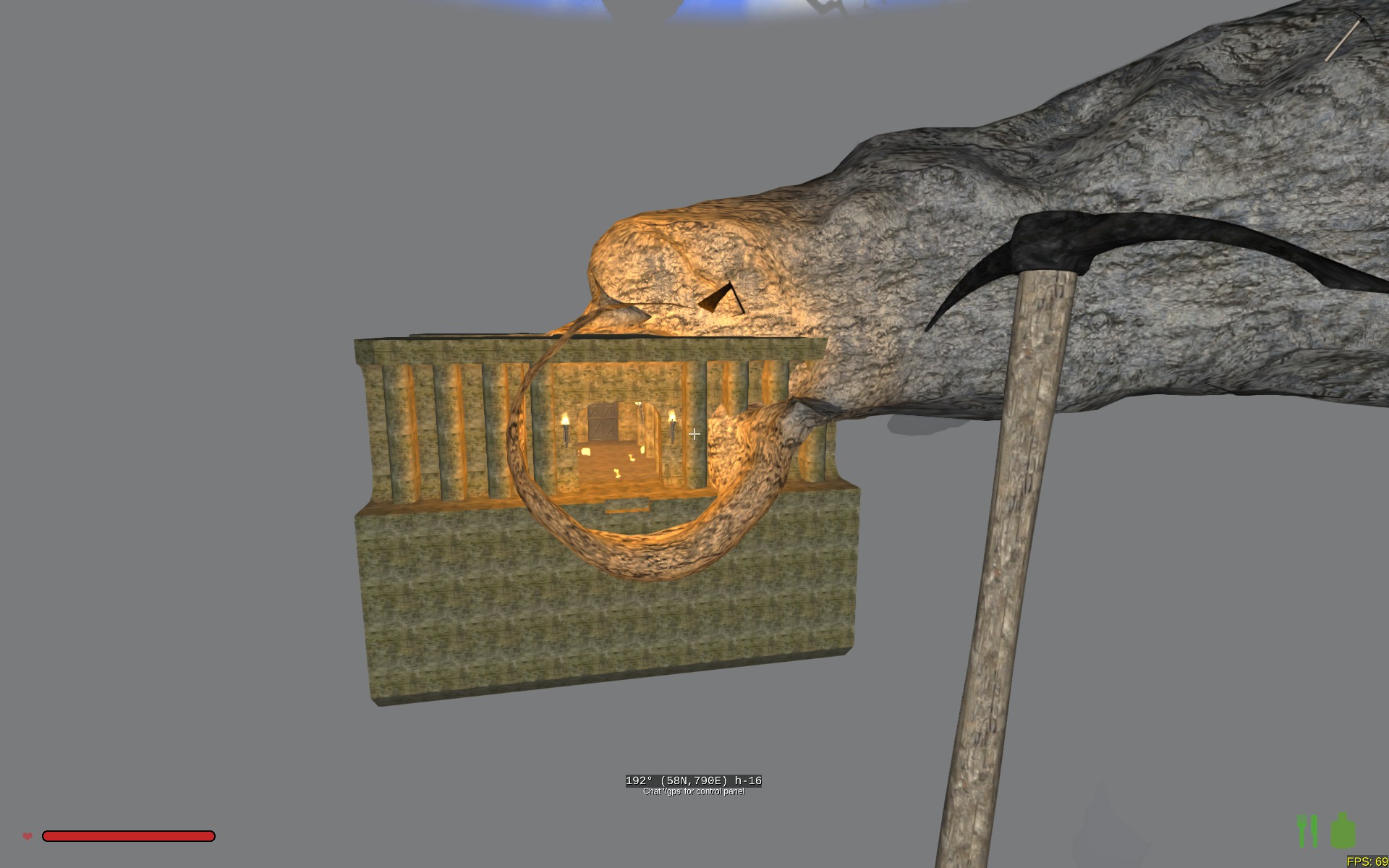Hatte den Hotfix geladen und ein neues Spiel erstellt. Leider waren die Dungeons auf herkömmlichen Wegen nicht zu finden. Erst als ich in den Flugmodus bin und unterirdisch gesucht habe, fand ich den ersten und gleich den zweiten. Sie befanden sich in toten Stollen, ohne Verbindung zur Oberfläche. Der dritte dann war mit der Oberfläche verbunden und konnte auch von dort erreicht werden! Hier mal ein paar Fotos! Alle gefundenen Gegenstände können mitgenommen werden. Auch die eiserne Jungfrau!
