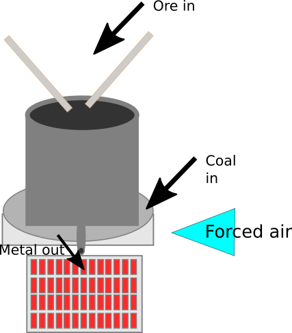 - as long as there are ores (you could be adding as it goes down), coal and forced air, smelting happens. put a tray and open lever to get the melted metal into it so it becomes ingots.