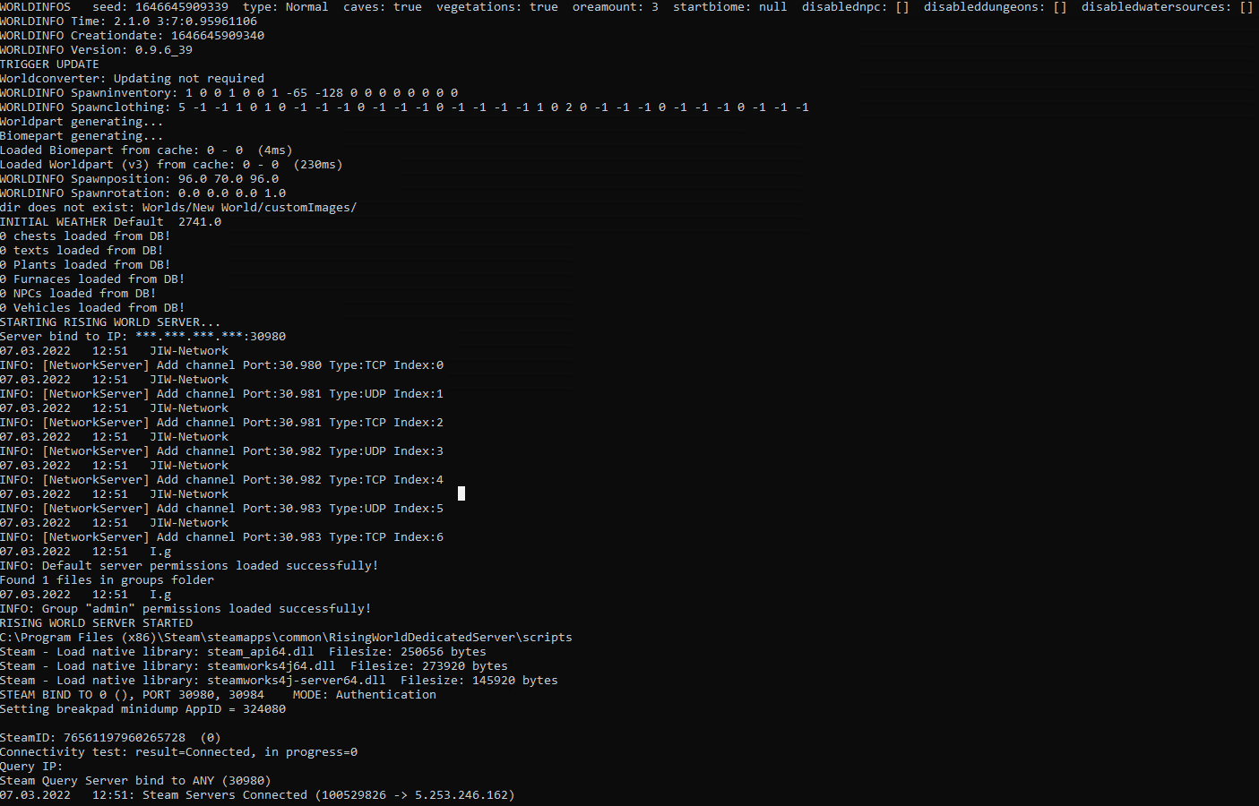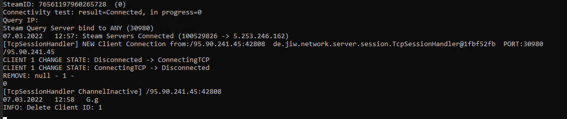 Hallo ich habe einen Root Server und habe dort Steam Installiert und den Rising World Dedicated Server Installiert und soweit eingestellt Server Startet und wird auch in der Server Liste Angezeigt. Aber wen ich versuche zu Verbinden dann fliege ich direkt wieder ins Main Menu ohne Error Message. Das einzige was in der Server Konsole kommt siehe Bilder. Ports sind alle eingestellt und auch ohne Firewall geht es nicht.