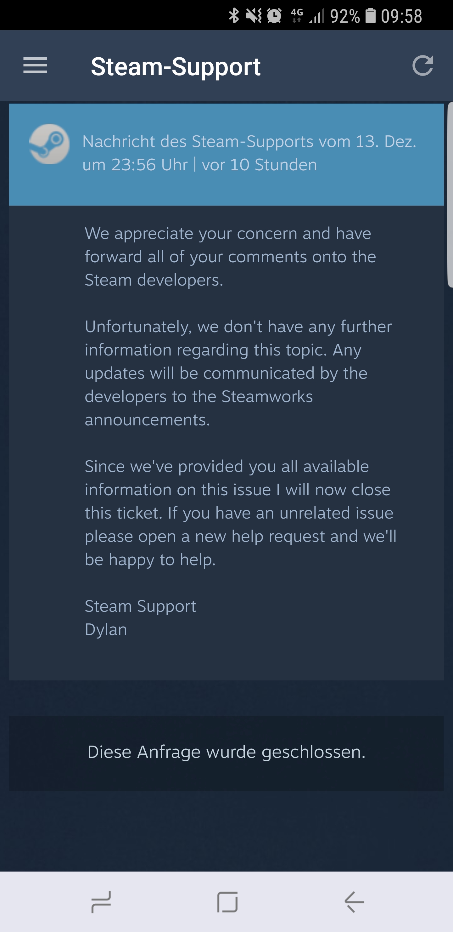 Nachricht des Steam-Supports vom 16. Dez. um 21:36 Uhr | vor 7 Stunden