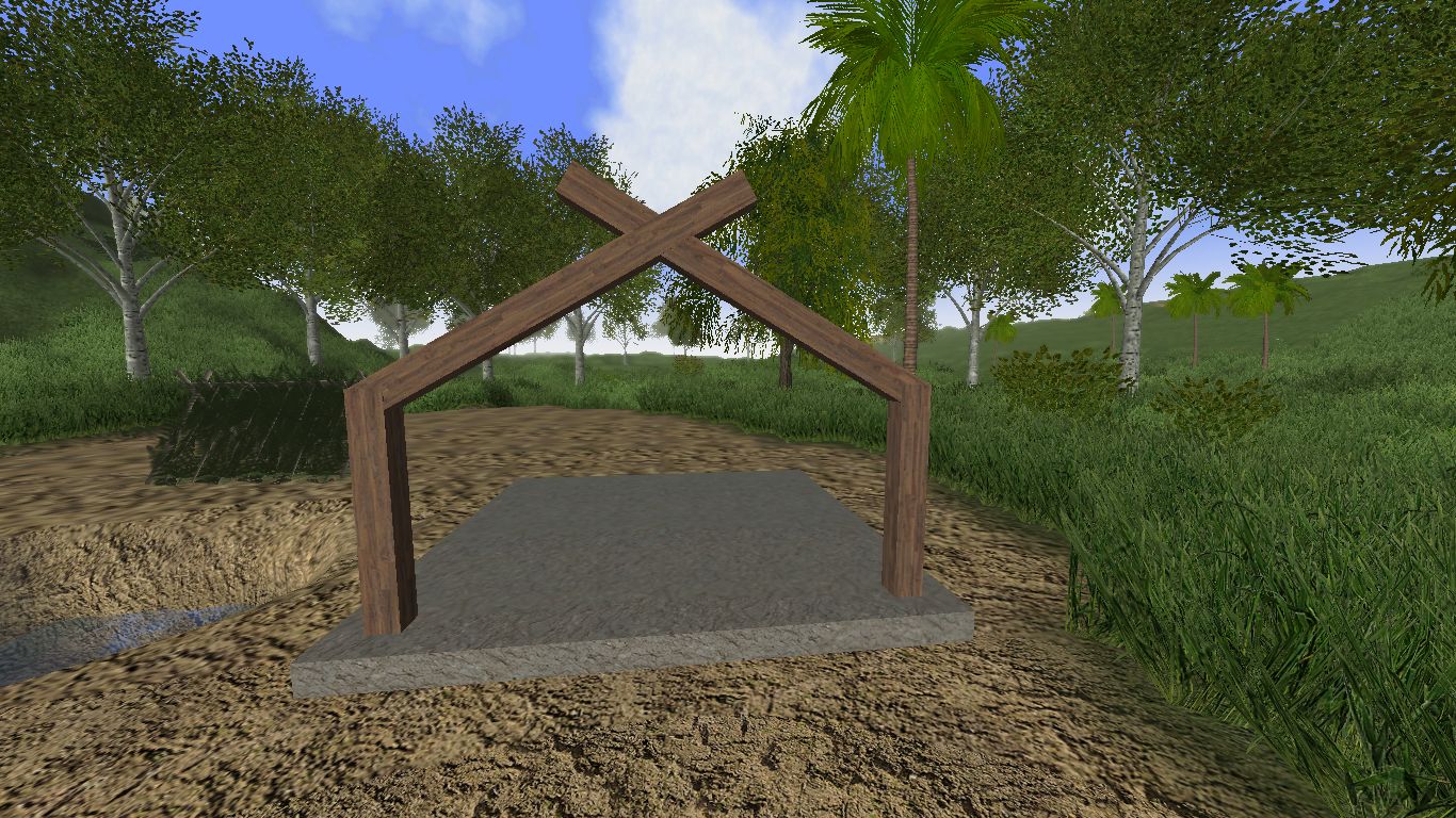 - Now to fill in the Triangle space. take a wood plank and narrow it so it is similar to the width of what a 2x4 width would look like. The reason for this is we are going to hide the ends of these planks into the sloped beams that form the roof angle. Now position this plank at the bottom of the triangle and resize the length of the blank so it is shorter than the distance between the 2 sloped planks that form the roof. When you are happy with it hit the CTRL key to lock it into place.