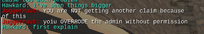He came back with his word that i would get another claim for being a knight too.He even said that I overrode admin without permission