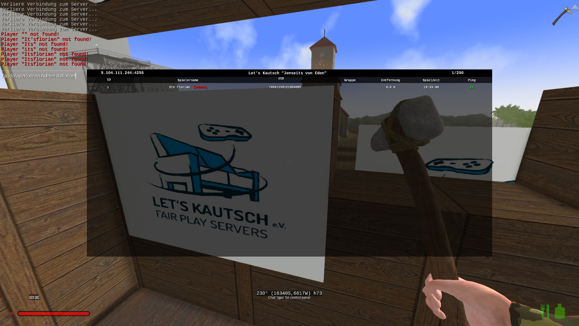 ich war auf einem Server gewesen der schreibt immer wieder daran wenn ich in der Tür benutzt hatte ich wäre nicht berechtigt