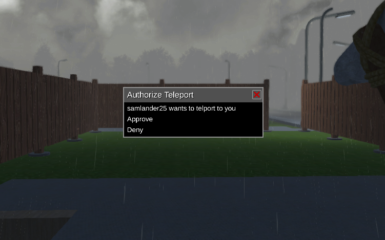 /tphere [player] - sends a request to the player for them to join you where you are.RWTeleport is consent based meaning, when you send a request, the target player receives a pop up gui window that asks them to approve or deny the request.