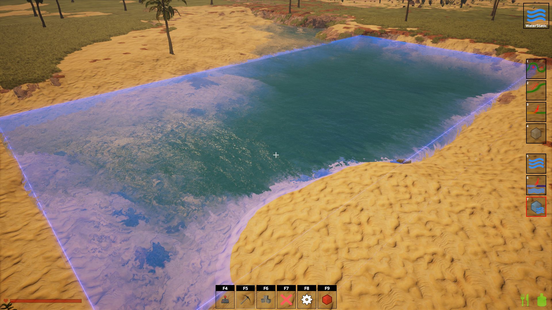 I would suggest using F5, option 7 to select an area, then use the mouse scroll wheel to set the water to "static," confirm with the left mouse button, and then move the selection area in a different direction using the arrow keys and the Shift key. Repeat this process until the water inside and around the castle is static. After that, you can remove the water inside the castle without any more water flowing in from outside, since it should now be static.