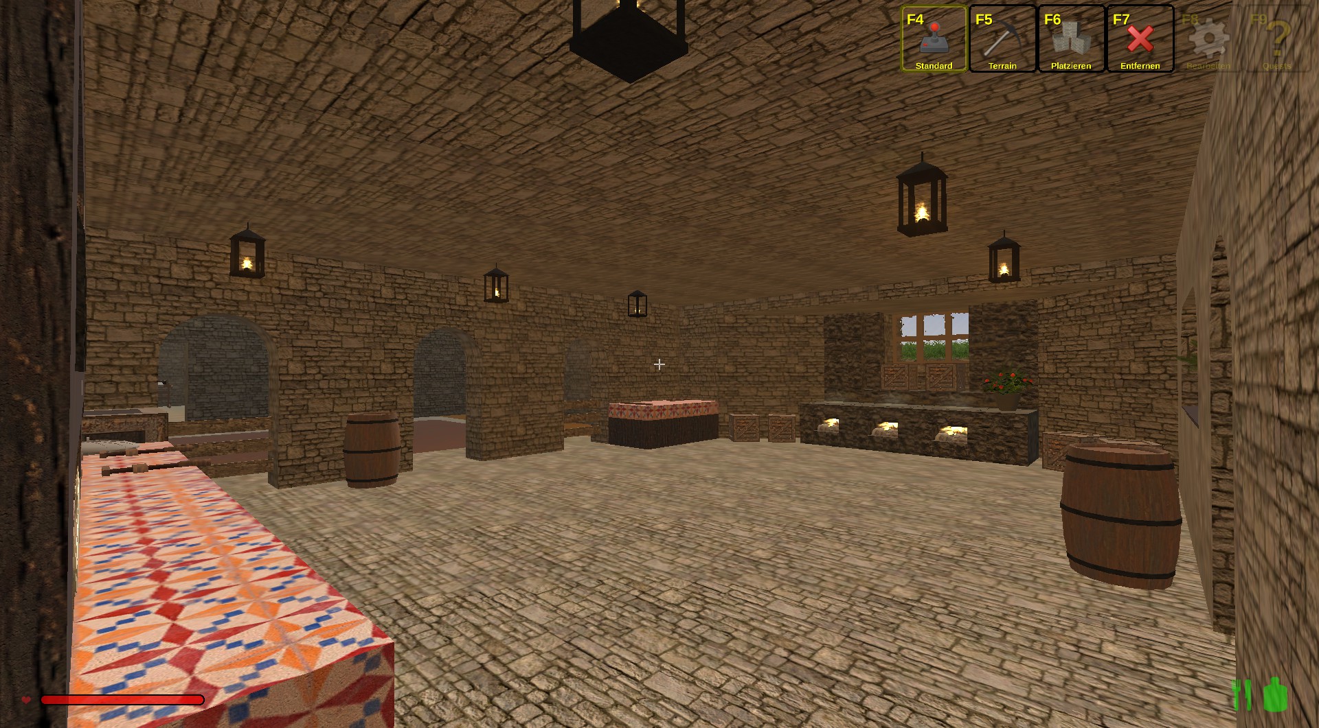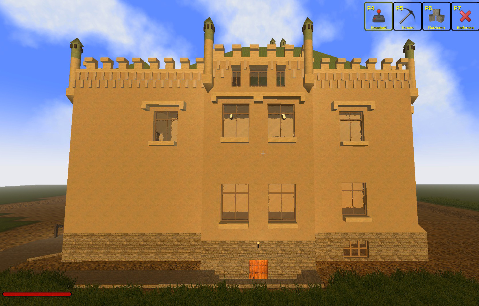 Lediglich im Kellergeschoss habe ich ein paar Räumlichkeiten gestaltet, mit allem, was man in Rising World so braucht. Ich glaube im Obergeschoss fehlt eine Tür zum Balkon ... aber das ist jetzt halt so, da das Blaupausen gar nicht mal so einfach war; es reichte nicht aus alles entsprechend zu makieren (bereichsmäßig); es musste auch alles in Sichtweite sein
