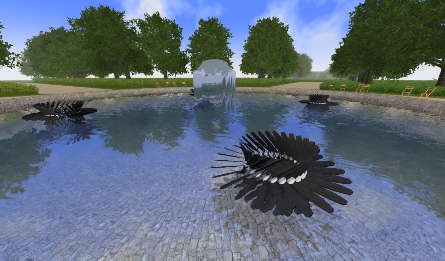 I'm sharing today my last invention (maybe it has been invented before but i don't find it), the animated sculptures. I placed them in a pond in the style of Jean Tinguely (swiss artist). The pond is inspired from the Tuileries in Paris, it's nice to have such a place in the heart of a city.