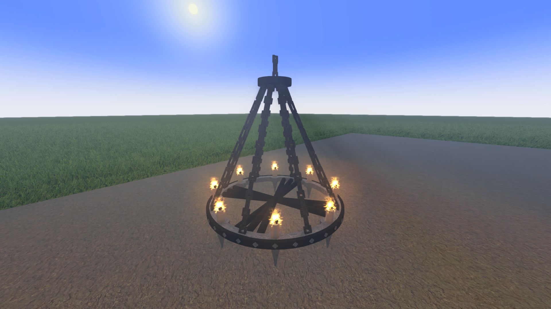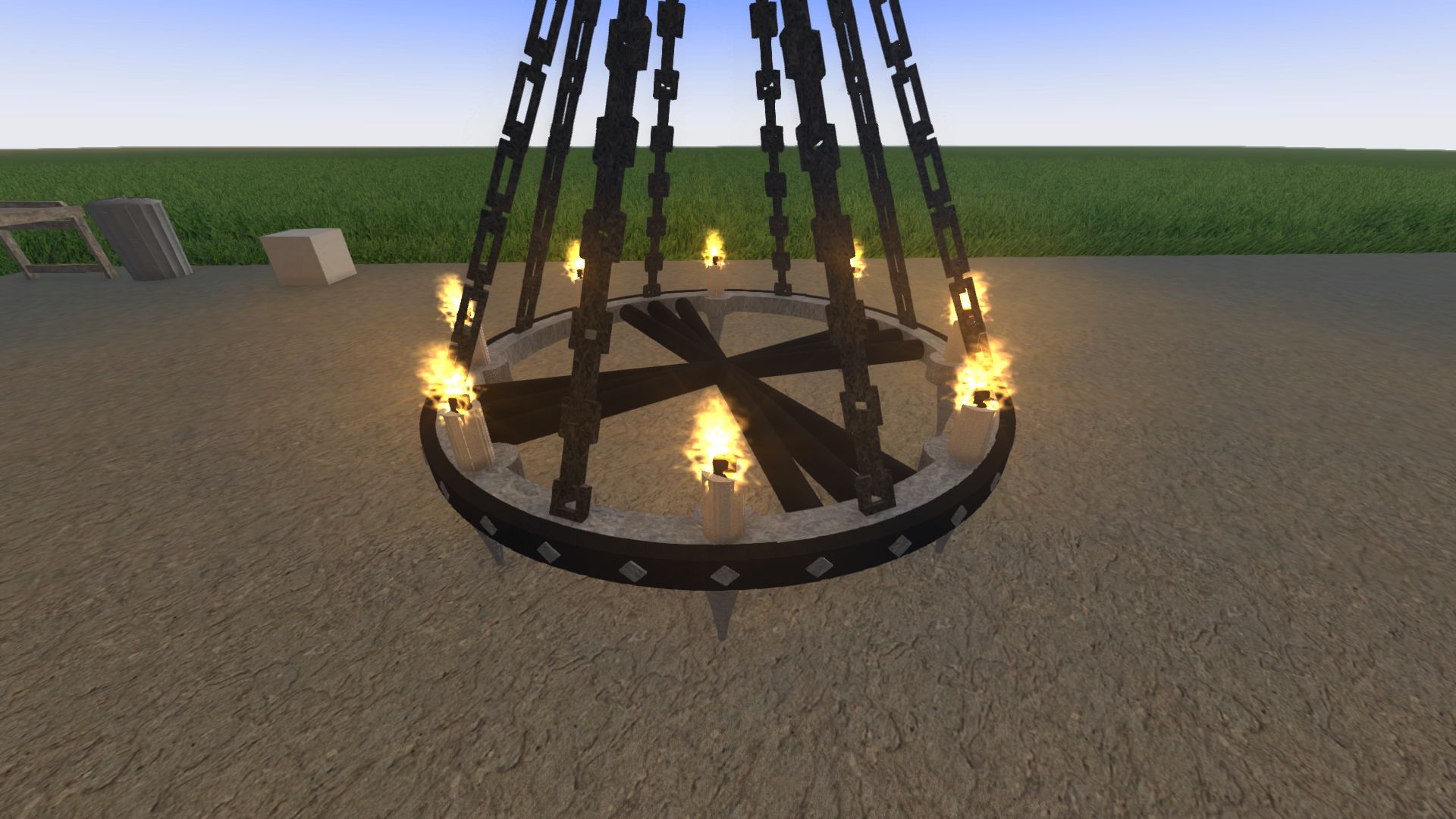 Der Kronleuchter hat versteckte Fackeln als Kerze, Kerzen einzeln gibt es ja noch nicht.